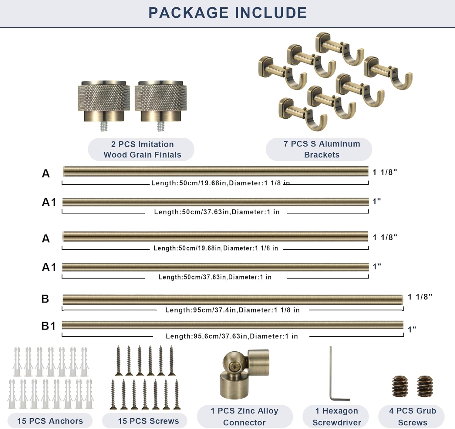 | Included Components | ALUMINUM BRACKET, ALUMINUM FINIALS, ROD, SCREW&ANCHOR, ZINC ALLOY CONNECTOR |