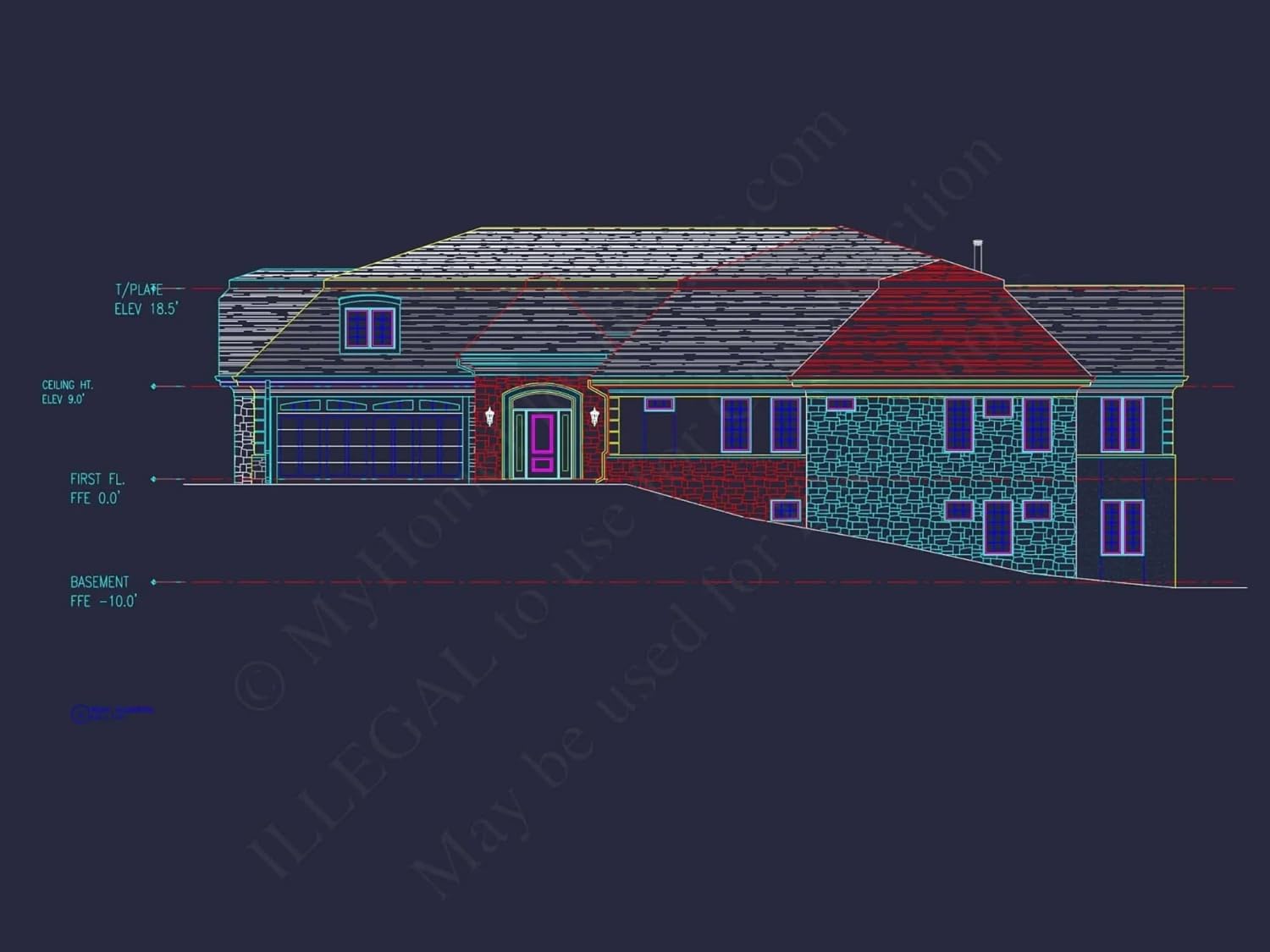 Width: 71′-9″Depth: 90′-2″Htd SF: 3,858Unhtd SF: 690Modern Duplex Home Plan - 1-Story Layout with 6 Bedrooms & CAD FilesExplore this modern duplex house plan featuring 3,858 heated sq. ft., 6 bedrooms, 4 baths, and full CAD blueprints—includes basement foundation and covered porches.This duplex house plan offers a perfect mix of modern architecture and practical livability. Designed for growing families or real estate investors, it delivers open-concept layouts and privacy-focused design.Key Features of the Home PlanLiving Areas - Heated & UnheatedHeated area: 3,858 sq. ft. across a spacious single-story footprint.Unheated extras: 690 sq. ft. including storage space and covered porches.Bedrooms & Bathrooms6 total bedrooms—3 per unit—including Owner Suites with walk-in closets.4 full bathrooms provide convenience and privacy for each side.Interior Highlights9-foot ceilings create a sense of openness and light throughout.Open floor plan connects kitchen, dining, and living spaces. Explore open layouts.Kitchen island and breakfast nook for easy meal prep and casual dining.Generous storage with walk-in pantries and mudrooms.Garage & Storage DetailsGarage Bays: Each unit features its own private garage bay (2 total).Garage Type: Front-entry garages for easy access.Storage: Additional attic space, mudroom cubbies, and utility areas.Outdoor Living FeaturesCovered front and rear porches offer shaded areas to relax or entertain.Exterior showcases a blend of brick, stone, and siding for durability and charm.Architectural Style: Modern DuplexThis design blends efficient layouts with timeless curb appeal, perfect for multi-family living or rental property development. Learn more about duplex house plans or explore architectural inspiration at ArchDaily.Bonus FeaturesBasement foundation—ideal for sloped lots and added storage or utility rooms.Flex layout—adaptable for rental
