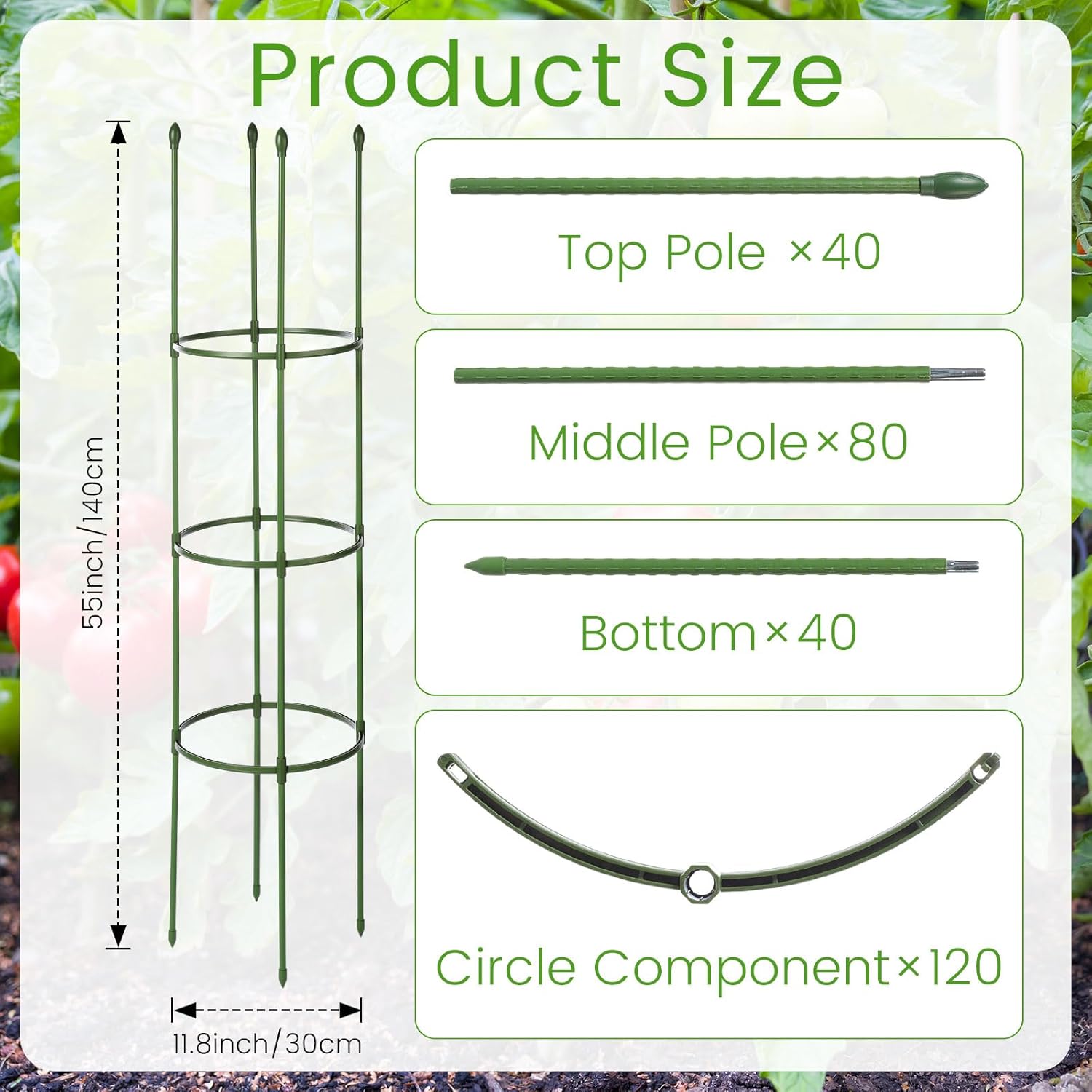 Features: Plant stakes can steadily support your tomatoes for indoor and outdoor. This plant cage use in many growing seasons, which is designed to support vegetable or tomato support for vertical climbing plants, better through plant circulation, and natural ripening of fruit to provide support. Adjustability is the key to helping your vine plants grow healthily. Thanks to the clips, you can reposition their cage to match their needs and ensure continuous support. This cage allows constant healthy growth with the placement and movement of the adjustable snap arms as they easily attach to the stakes. Reach up to 55.1 inches height. Specifications: Material: plastic and alloy Size: 11.8 x 55.1 inches/ 30 x 140 cm Package include: 10 x Tomato cages Warm notes: Please allow slight size error due to manual measurement. The colors may exist slight difference due to different screen.