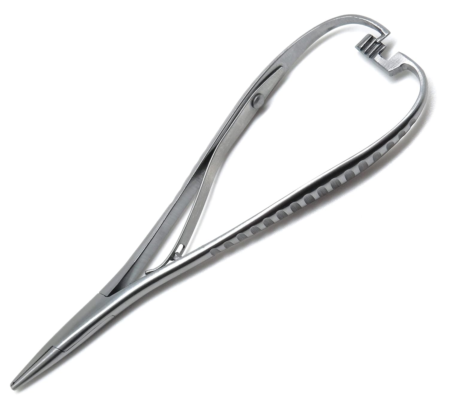 10 Pieces of Dental Mathieu Needle Holder with Hole Tip14 cm (5.5"): Used to grasp and guide the needle when suturing. Features a multi-position ratchet that provides controlled grip pressure and smooth grip release.