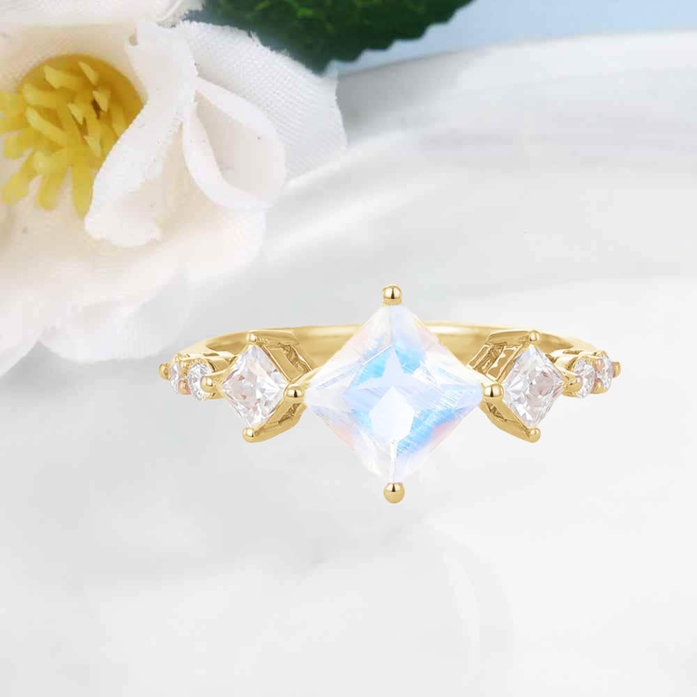 10K 14K 18K Gold Natural Moonstone Engagement Ring for Women,925 Sterling Silver Moon Stone Gemstone Rings with Moissanite Wedding Promise Ring Birthday Jewelry Gifts for Her Mom Nana Wife GirlsThis 925 sterling silver or real gold moonstone engagement ring is handcrafted by our designers with meticulous attention to detail from design to finish. The main stone is a genuine natural moonstone. When viewed from the side, there will be a faint blue light. It is normal for the color of the real item to be slightly different from the picture.Ring Details: Highly polished finish,nickel-free, lead-free, hypoallergenic and cadmium-free for sensitive skin.Perfect for adding a splash of color to any outfit.Suitable for many occasions:❤Mother Gift ❤Wife Gift❤Grandma Gift❤Sister Gift❤Girlfriend Gift❤Teen Gift❤Engagement Gift❤Wedding Gift❤Mother's Day Gift❤Christmas Gift❤Thanksgiving Day Gift ❤Birthday Gift ❤Anniversary Gift❤Valentine’s Day GiftCustom moon stone ring : Material:925 sterling silver/10k/14k/18k gold Color: yellow gold / white color / rose gold color Contains: 1 x fashion gift box, 1 x moonstone ring