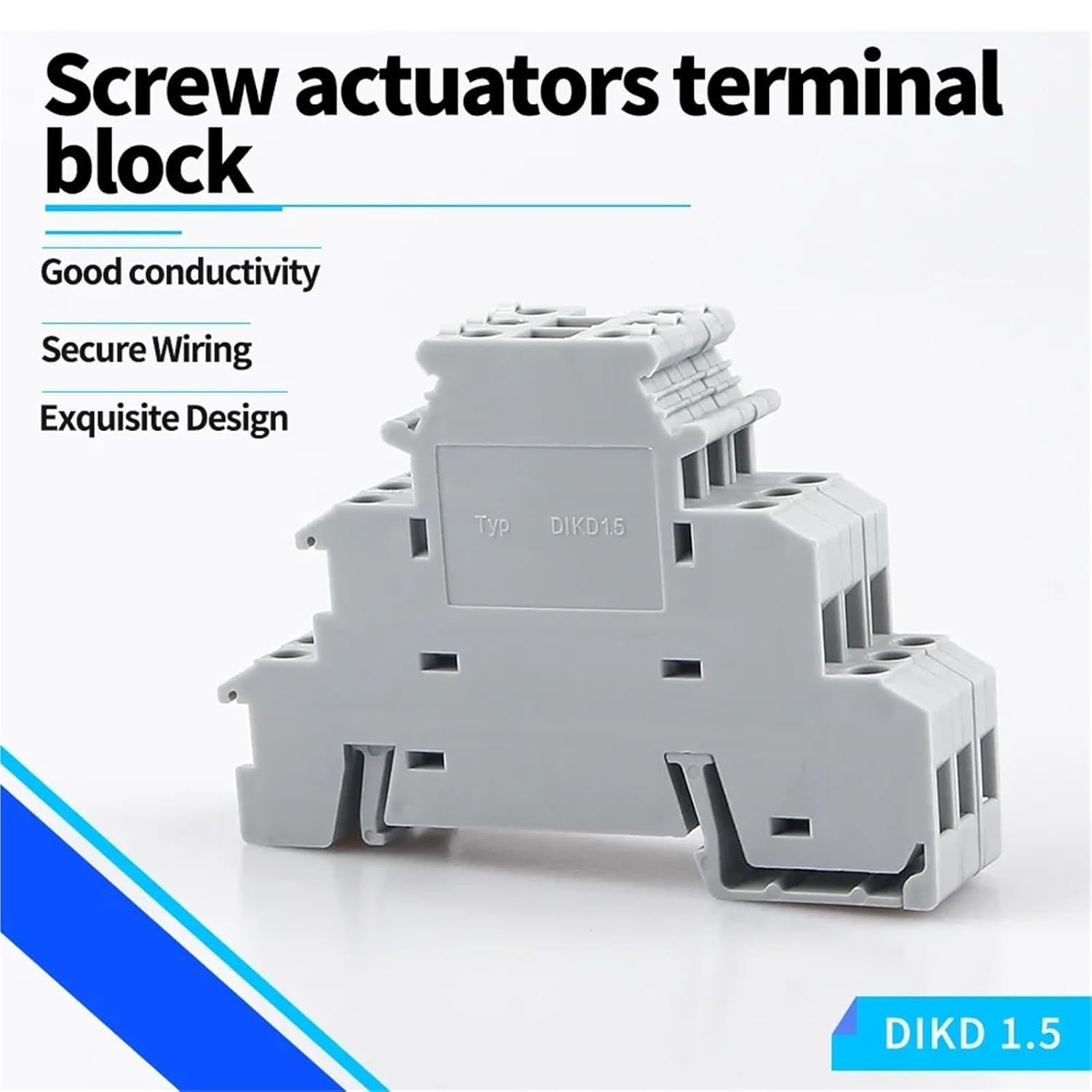 Terminal Blocks==========Hign-concerned Chemical : NoneConductor Size : 24-12awgNumber of Contacts : 1 - 10Model Number : DIKD-1.5Type : ScrewUsage : Electrical WiringConnection Method : Screw