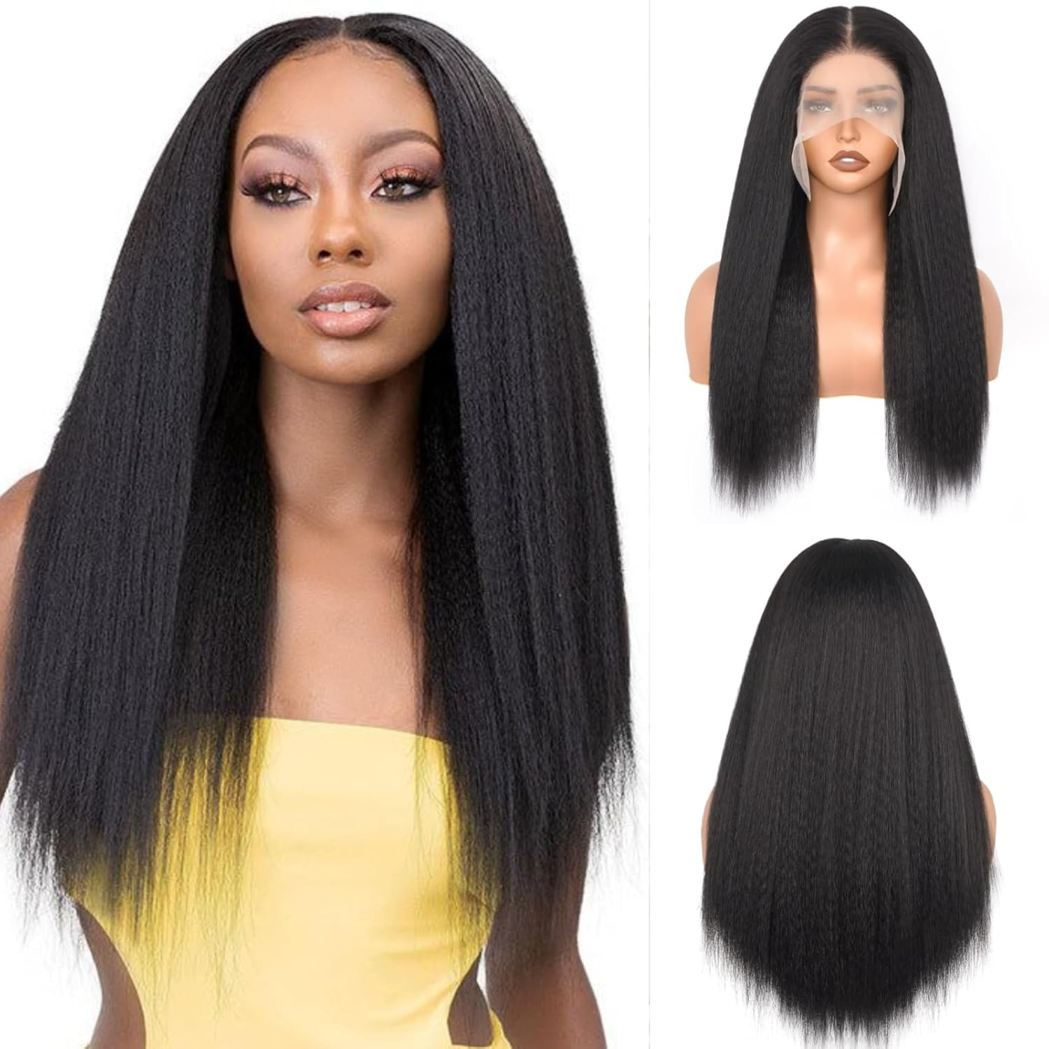 13x6 HD Lace Front Wig Kinky Straight Synthetic Wigs for Black Women Pre Plucked Glueless Ready to Wear Soft as Human Hair