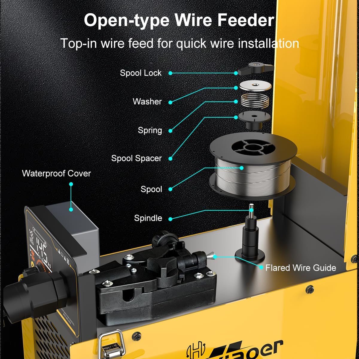 | Included Components | 1*0.5KG 0.8MM Flux Cored Wire 1*0.8/0.9 K-type wire feed wheel 2*0.8 Conductive Nozzle 2*0.9 Conductive Nozzle 2*1.0 conductive nozzles (including 6 on the gun) 1*Simple slag hammer 1*Backstrap 10*2.5mm welding rod 1*Instruction Manual, 1*1.5m 10-25 Ground Clamp, 1*1.5m Power Cord, 1*1.8m 10-25 welding torch clamp, 1*2.0M 15AK Welding Torch |