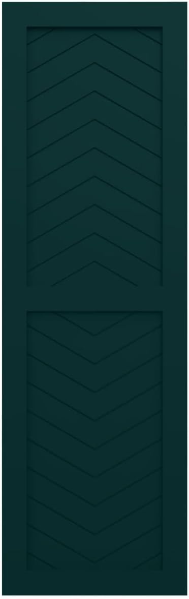 | Included Components | 18"W x 30"H True Fit PVC Two Panel Chevron Modern Style Fixed Mount Shutters, Thermal Green (Per Pair - Hardware Not Included) |