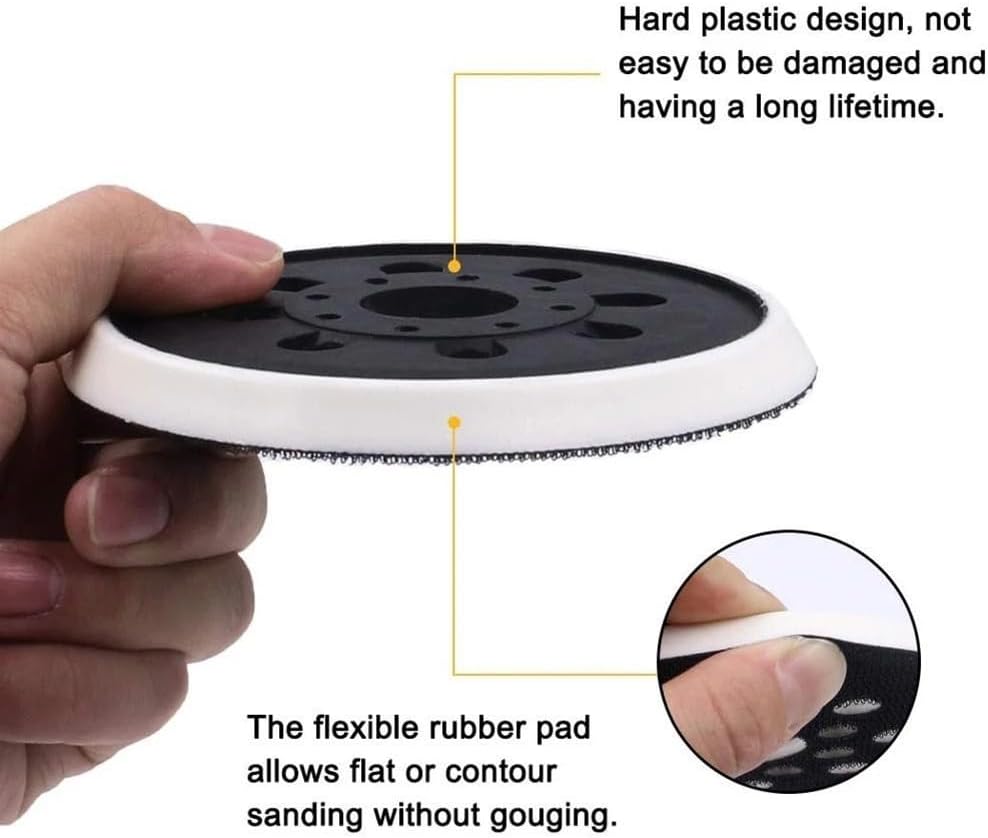 Product description Details:* and*Made of and rubber, long service life*Applicable to 5" and pads*Convenient to use, in use.*Fit for Bosch Sander GEX125-1AE , PEX 220A, PEX 220AE*Color: Black+White (As Pictures Show)*Diameter: 5inch/125mm (Approx)*Connection mode: and*Hole number: 8 holes*Quantity: 2pcsPackage Contents:2*Sanding Pad Manufacturer Contact Information no