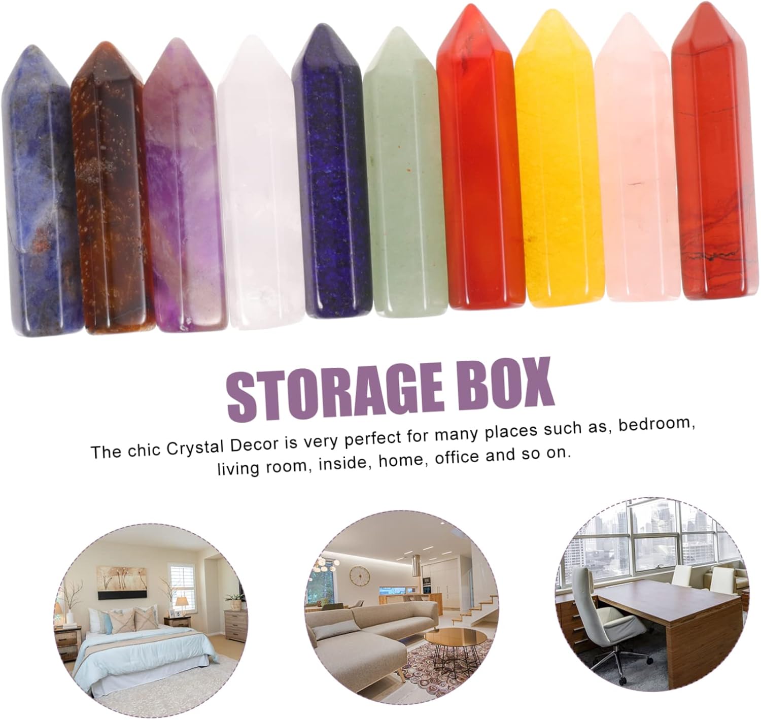 Package List 20 x crystal decors Characteristics -Size:3.40X0.80X0.80cm/1.34X0.31X0 crystal display. -Color:Mixed color crystal stones ornament -Material:Crystal crystal statue decor -Natural Crystal gemstone. The color the carving may vary slightly due to the nature of the gemstone decorative crystal stones. -The crystal statue represents blessing, that is a good for you to send it on holidays or housewarming crystal decorative stones. -Fine workmanship, delicate details, it's very nice looking and works as a home decoration crystal pillar decoration. -The chic Crystal Decor is very for many places such as, bedroom, living room, inside, home, office and so on crystal decoration. -Display your spirituality in your bedroom, home and office, on a shelf or on a table with a natural backdrop such as plants meditation accessories.Goods Informationsmall crystal stones It's a practical decorative accessory and a great for a friend's housewarming.crystal table ornament You can use it to decorate your living room, bed room or bathroom which is elegant.crystal stones This product is a Crystal Stone Ornament.crystal decor It adds a beautiful scenery to your desktop, allowing you to have a happy mood in life and work