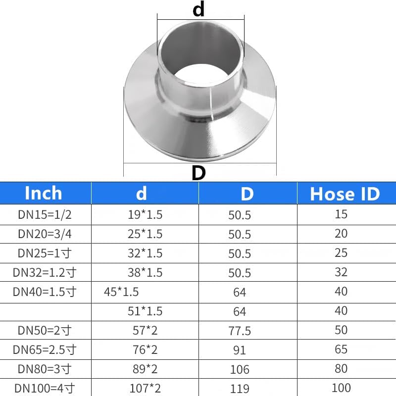 25mm (3/4" DN20) Ferrule 50.5mm Tri-Clamp Braided Flexible Hose for Homemade Distilling, Length 2000mm, Sanitary Tube Steel Sanitary 304 The interior of the product is finely polished, no welding lines, hygienic and clean. Can be used for homemade brewing distillations such as beer, wine, etc. Customization is available.