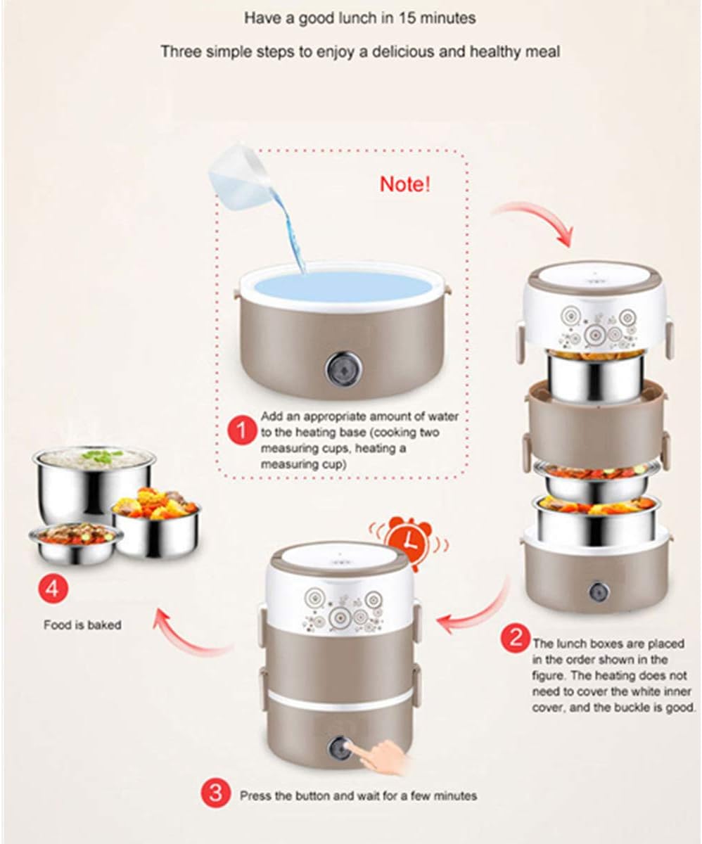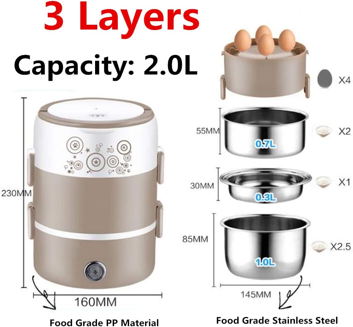 Specification:Colors:Pink,CoffeeMaterial:Food Grade Stainless Steel+PPSize:about 160*230mmInner container:L:145*85mmM:136*55mmS:145*30mm[Conversion: 1mm=0.03937 inch, 1inch=25.4 mm]Rated Voltage: 220V/50HzPower: 235WCapacity: 2.0LPackage Included:1 x Electric Lunch Box1 x Power Adapter(According to different countries, we will send corresponding adapter.)Note:-Due to different producing batches, product details might be a little different. If you minding the difference, please buy it carefully.-Please allow 1-3CM differs due to manual measurement.