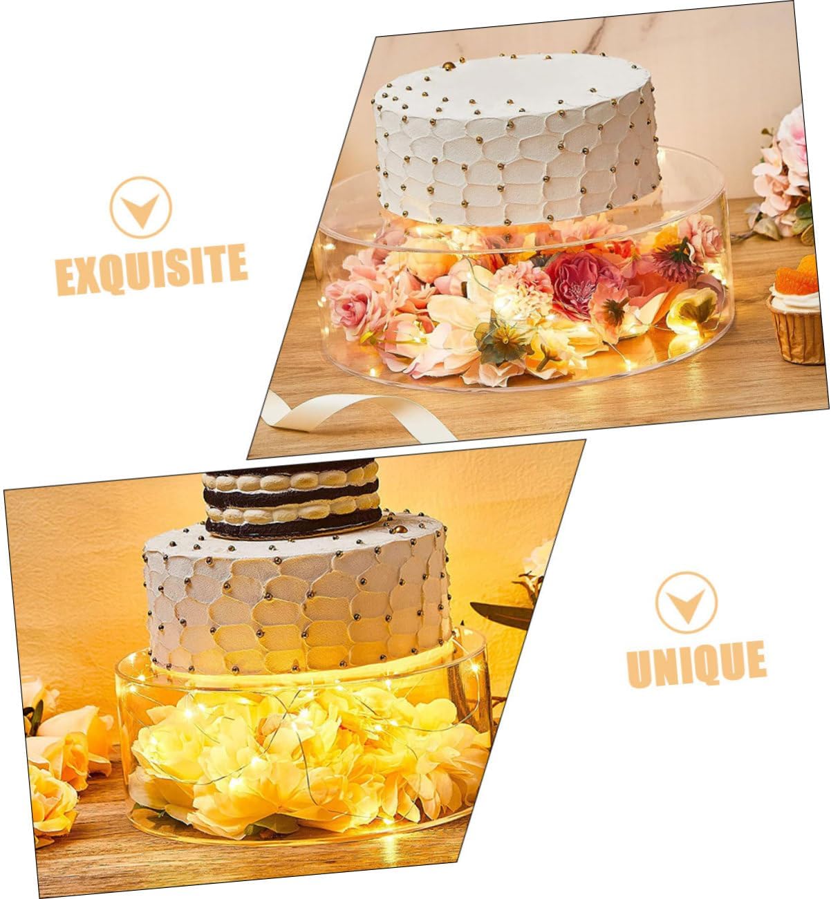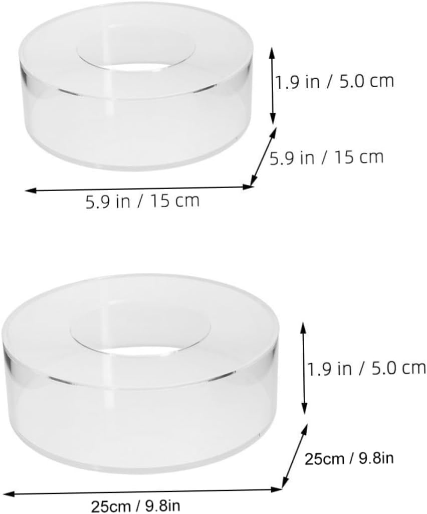 Package List 1 x Acrylic Fillable Cake Stand (25cm) 1 x Acrylic Fillable Cake Stand (15cm) Features -Color:Transparent round dessert holder stand - Size: 20.00X20.00X5.00cm/7.86X7.86X1.97in dessert display stands -Material:Acrylic cake holders - Size: 15.00X15.00X5.00cm/5.89X5.89X1.97in party cake stand - Fillable design allows for creative fillings like flowers, balloons, and confetti, and so on Festival Cake Stands. - Adopting from acrylic material, which is lightweight, with and good workmanship display risers. - Suitable for dessert shops, markets, restaurants, wedding and other parties. to use dessert table display. - Perfect for holding cupcake, cookies, fruit, candy, chocolate, small cakes, snacks and other foods Fillable Cupcake Display Rack. - With the and unique appearance, it can bring elegant atmosphere to your party party cake holder.Goods Descriptionwedding cake stand Designed for multiple using occasions which is .cake pedestal Are you looking for a creative and cake display stand for your party or wedding? Our production can meet all your requirements with and reliable acrylic material for longer serving time