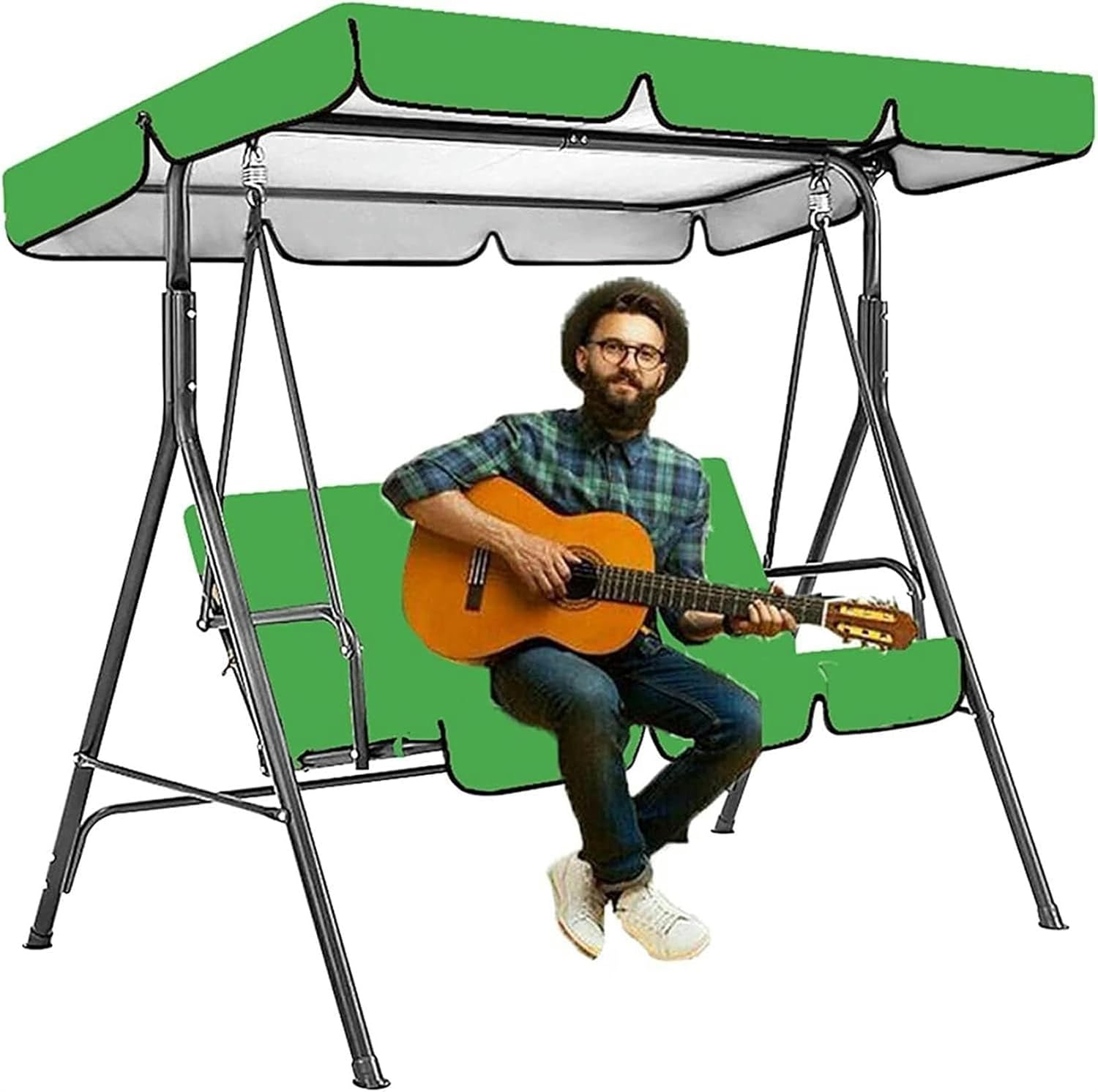 Why use the Swing Canopy? With our protective dust cover, you can save time cleaning things and spend more time doing what you want to do. This swing cover is easy to fold, and the special coated fabric protects your skin from the sun's harmful rays and shadows from the scorching sun. Sunscreen and waterproof, in the hot summer, you don't have to worry about getting tanned or getting wet, just sit on the swing and enjoy reading, playing, and parent-child games.Q: How is the sun protection effect of this swing ceiling?A: This swing canopy is made of high quality 210D oxford fabricwith a silver coating on the inside, the swinging canopy does a great job of protecting us from SUN and providing shade while maintaining brightness.Q: Are swing cover and swings sold together?A: This swing canopy only includes the canopy and seat cover, not the swing.Q: Will the ceiling of the swing swing and how to keep it still?A: There are ropes on both sides of the swing cover, and the swing can be prevented from swinging by tying both sides of the canopy swing.Q: What size swing is this garden swing top cover suitable for?A: The size of the top cover of this swing is: Seat cover: 150x50x10cm2 seater: 142x120x18cm , 164x114x15cm3 seater: 190x132x15cm , 195x125x15cm , 249x185x18cm The package includes:1* swing canopy cover1*swing seat cover Notice:1. Product size is measured by hand, there may be 1-2cm error2. Due to different monitors, the color of the product may be slightly different from the actual product, the actual product shall prevail!