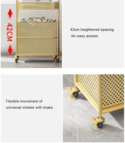 Introducing our versatile multifunctional cart, designed to elevate your organization in any setting. This cart serves as an efficient kitchen cart, utility cart, or mobile storage solution, offering exceptional functionality while keeping your items neatly arranged and easily accessible. Equipped with smooth-rolling wheels, it glides effortlessly across various surfaces, making it simple to transport items from one room to another. Constructed from durable metal, our movable shelf features a sleek and modern design that complements any decor. Measuring 40x24x84 cm, it provides generous storage space to help you declutter your environment, transforming chaotic areas into organized sanctuaries. Choose from stylish colors like gold, white, black, and green to find the perfect match for your home or office. This rolling cart is perfect for a wide range of applications, whether you need to store kitchen essentials, craft supplies, or bathroom toiletries. Its design ensures that everything you need is always within reach. Plus, its compact form allows it to fit seamlessly into tight spaces, making it an essential addition to any room. With a blend of practical design and aesthetic appeal, our storage cart enhances your organizational capabilities while adding a touch of style to your space. Discover the benefits of an efficient storage solution that combines both function and elegance. Transform your home or office organization today with this indispensable ally.