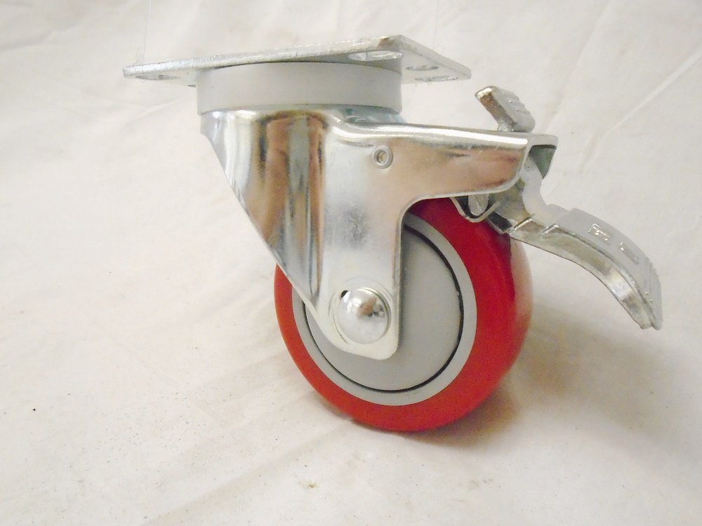 Size: 3" x 1-1/4" Color: Red Style: Swivel Caster w/ Total Lock & Rigid Condition: New Top Plate: 2-3/8" by 3-5/8" Overall Height: 4-1/4" Material: Polyurethane Features: Heat Treated Double Ball Raceway Capacity: 300 lbs Quantity: 1 - Set of 4 Part Number: R144TL | R144R Installation Hardware: Not included