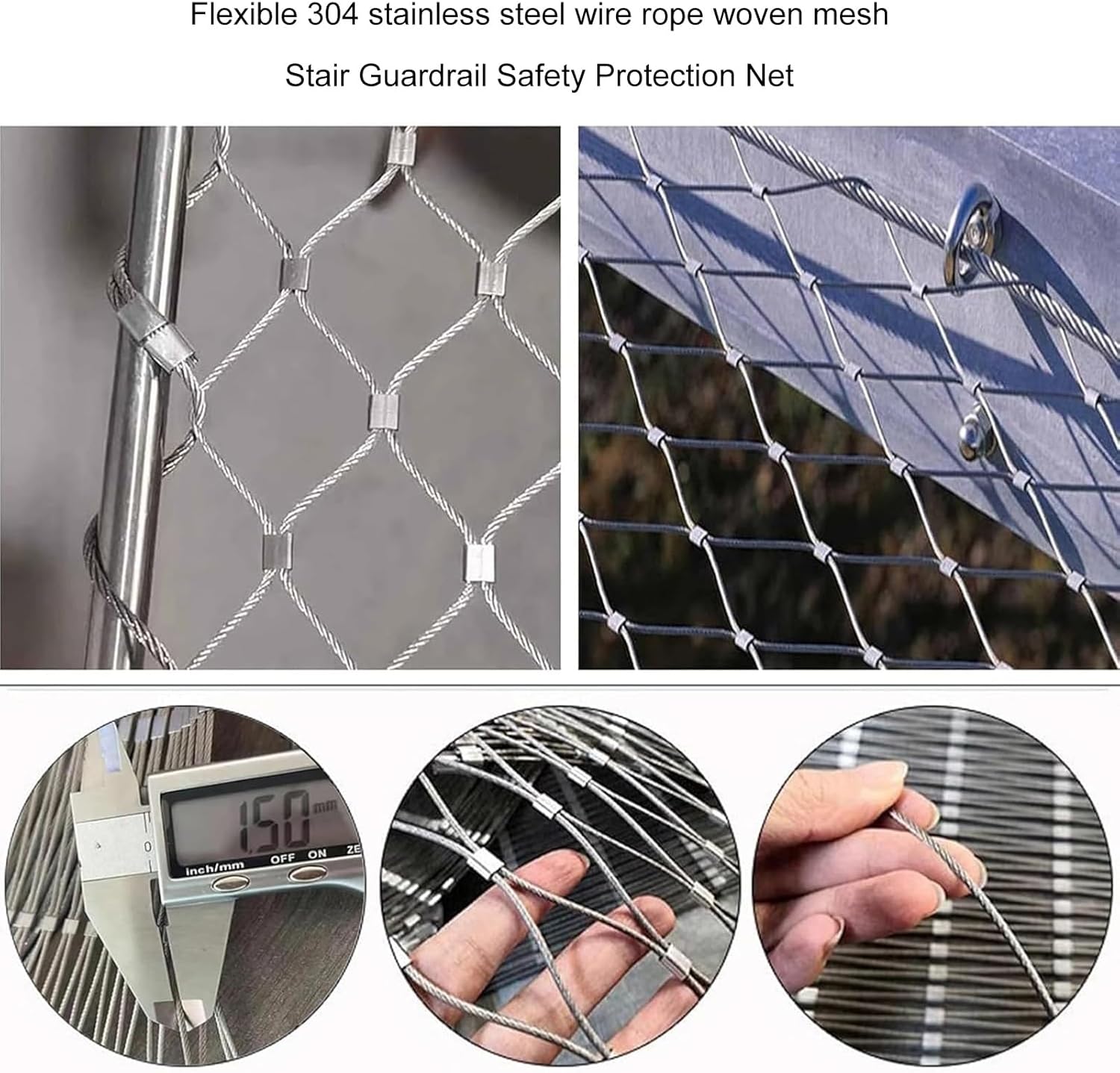 • Wide Application Scope: can be used for zoo fences, roof anti-fall fences, stainless steel balcony fences, stair fences, garden fences, municipal fences, plant climbing nets, metal mesh, animal cage nets