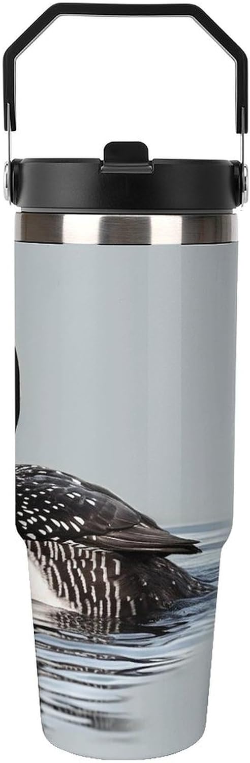 Our Loon Nature Bird travel water bottle is made of food-grade stainless steel. The wide mouth design makes it easy to clean and add ice, and the powder-coated exterior is non-slip and durable, ensuring driving safety.Whether you prefer sipping or quenching your thirst, this personalized insulated mug has you covered. Featuring a splash-proof straw design, a sealing ring securely holds the reusable straw, and a drinking spout and full-coverage lid for enhanced leak-proof performance, this mug allows you to easily carry ice water to work, meetings, the gym, or on trips.You can give it to your friends and family as a birthday, Mother's Day, Father's Day, New Year's, Thanksgiving, and holiday gift. It's a thoughtful present.