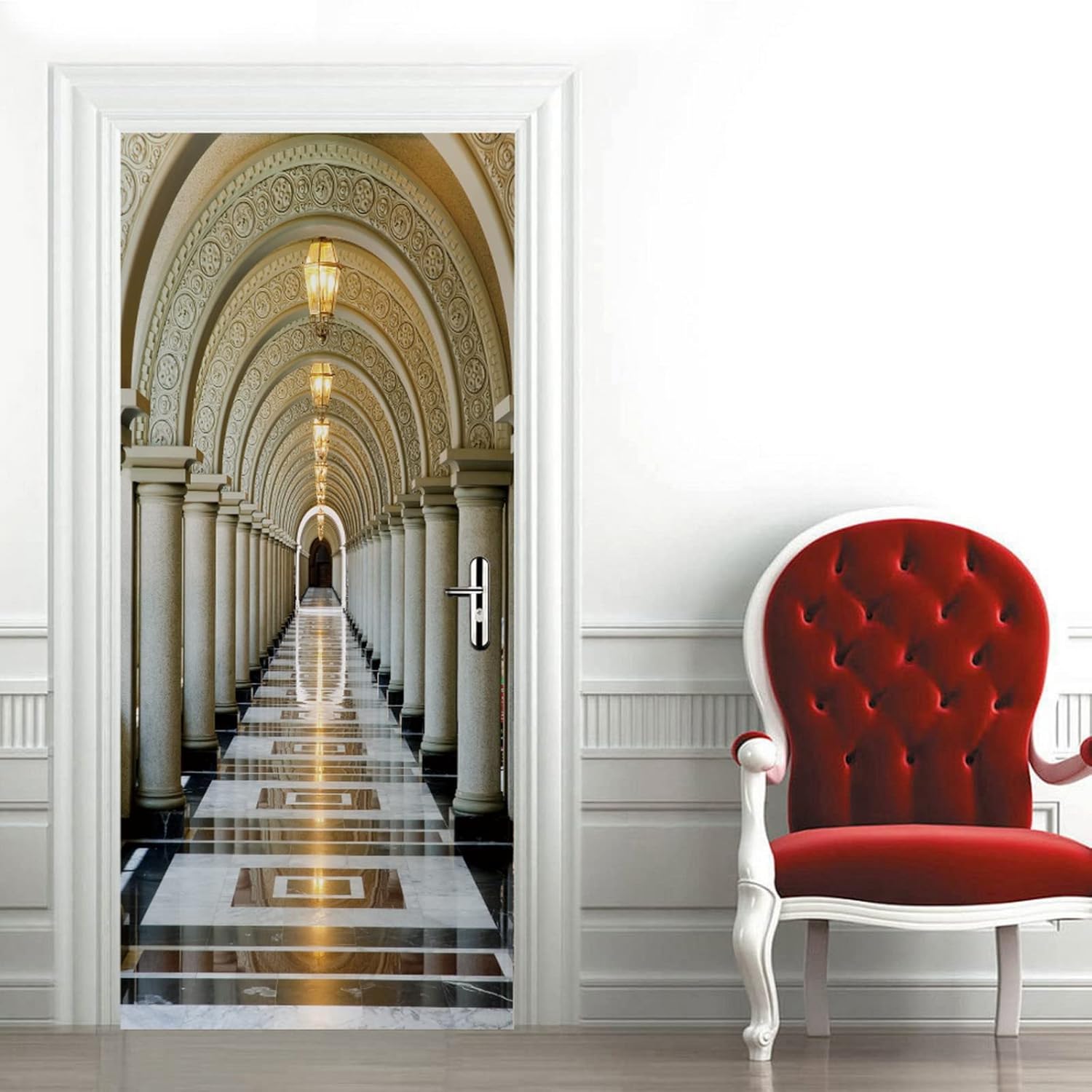 3D Door Stickers for Interior Doors Arched Walkway at Assumption University Thailand Vinyl Removable Self Adhesive Door Poster Wallpaper Mural Decals for Bedroom Office Bathroom 95x215cm