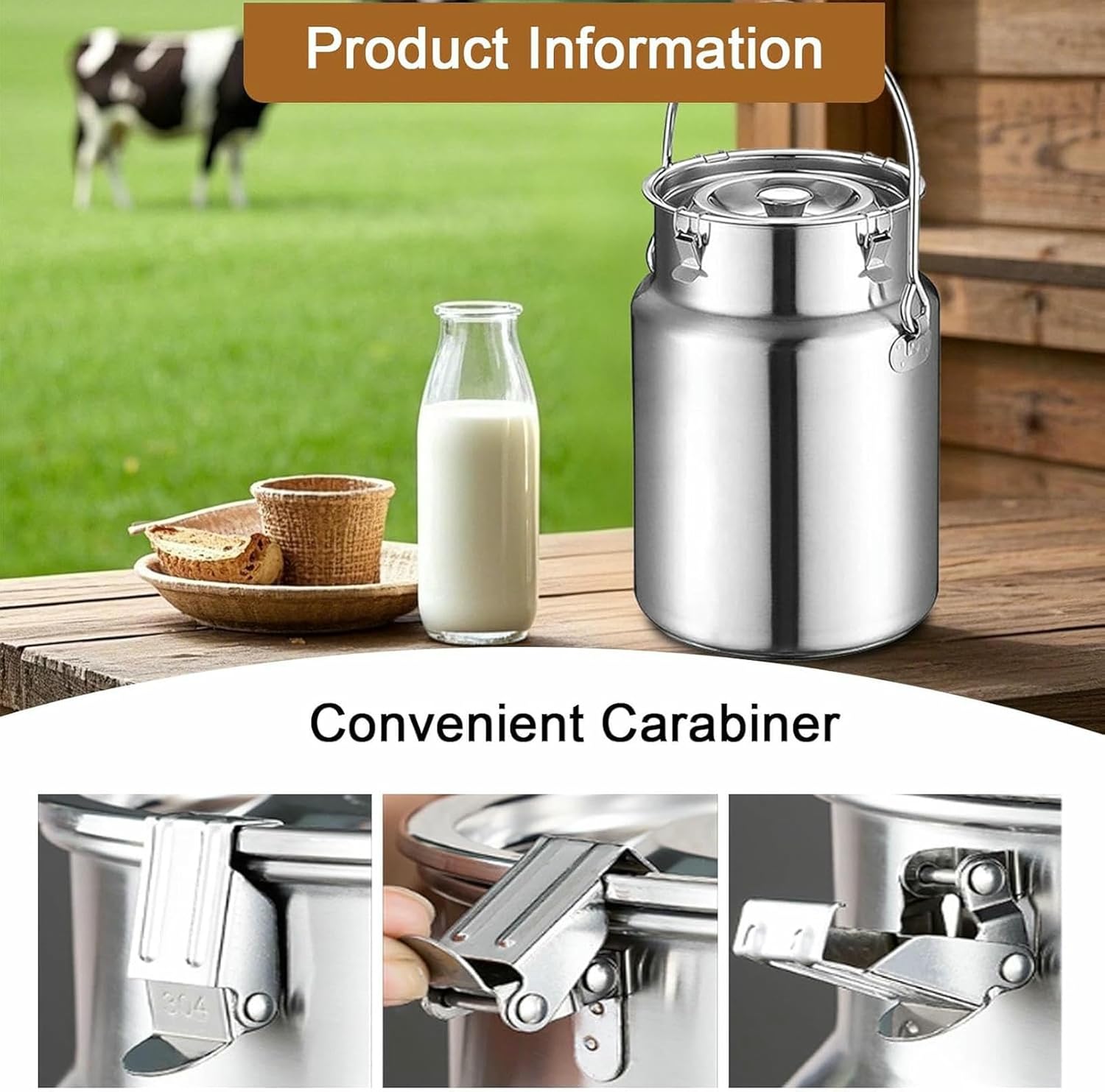 Want to carry a lot of drinks during a picnic but can't find a reliable container, or in the home kitchen, the container for storing liquids is always ineffective and makes you annoyed Don't worry, this stainless steel milk bucket is definitely your savior!This stainless steel milk pail is carefully crafted from high-quality stainless steel, which is sturdy and durable. Whether it is frequently used in the daily home kitchen or undergoes bumpy transportation during many picnic trips, it can handle it with ease.Shape: Cylinder Material: stainless steel Surface treatment: polished Gasket Material: Silicone Product use: can store rice, citrus peels, tea, grains, cooking oil, milk, etc. Use scene: home kitchen, restaurant, hotel, etc.Package Included: 1 x Stainless steel milk pailThis is the perfect solution for safely transporting milk, honey, oil and other liquids.