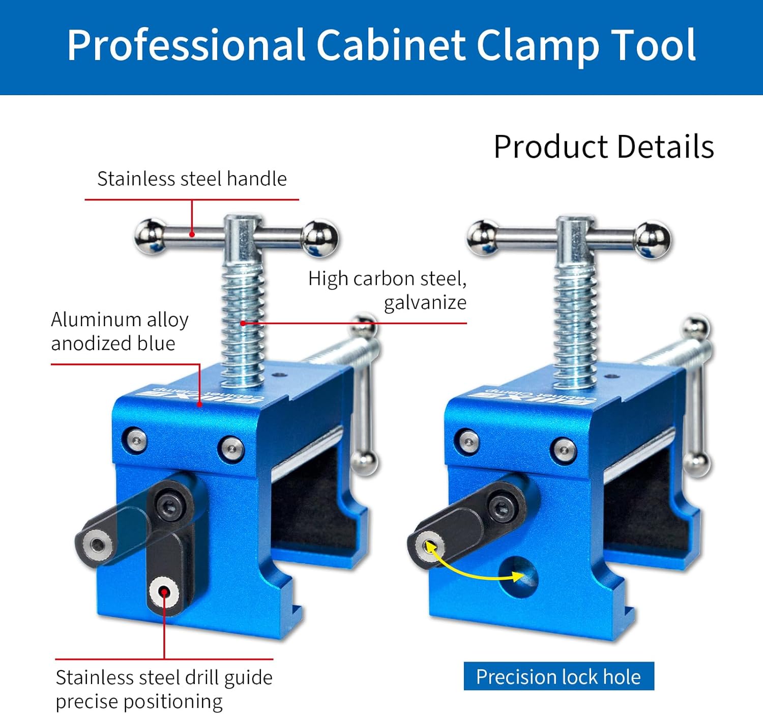 • SIIIXS Cabinet Clamps are crafted for durability and convenience, allowing you to tighten, align, pre-drill, and secure cabinet stiles without adjusting or removing the clamps. Each set includes fourhigh-performance face frame clamps