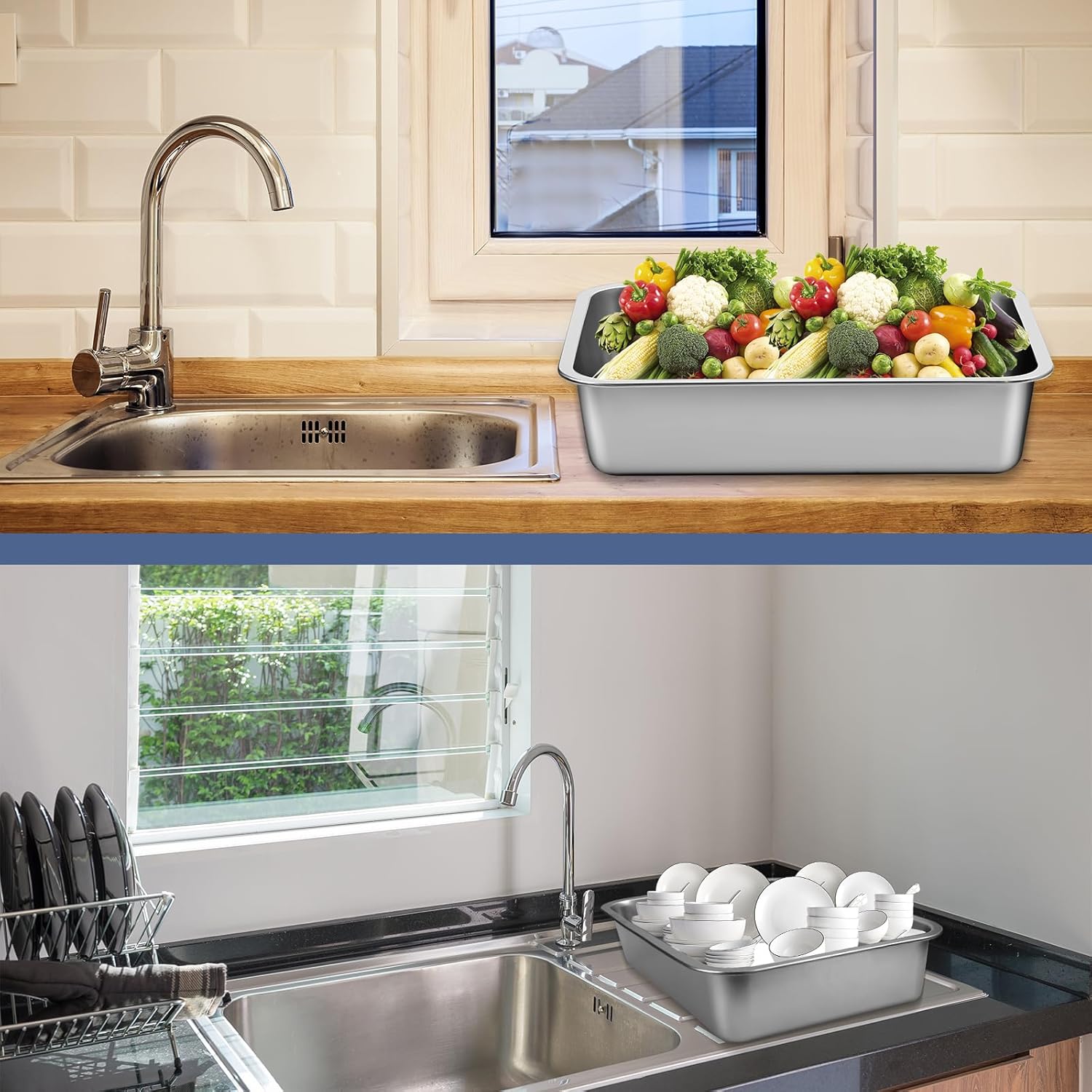 Features: In each package, buyers receive 4 bus tubs, making it a nice choice for both home and commercial needs. The elegant silver color of the bus tubs not only adds a touch of sophistication but also ensures widespread compatibility with various kitchen decorations. Specifications: Material: stainless steel Color: silver Size: about 17.72 x 13.78 x 3.94 inches/ 45 x 35 x 10 cm Package includes: 4 x Stainless bus tubs Notes: Manual measurement, please allow slight errors on size. The color may exist a slight difference due to different screen displays.