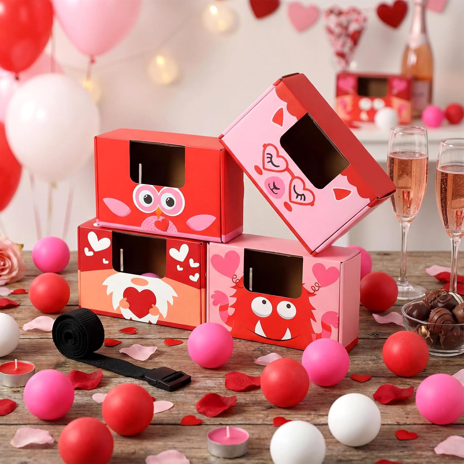 | Included Components | 4 x Belts, 4 x Corrugated cardboard boxes, 40 x Multicolor plastic balls |