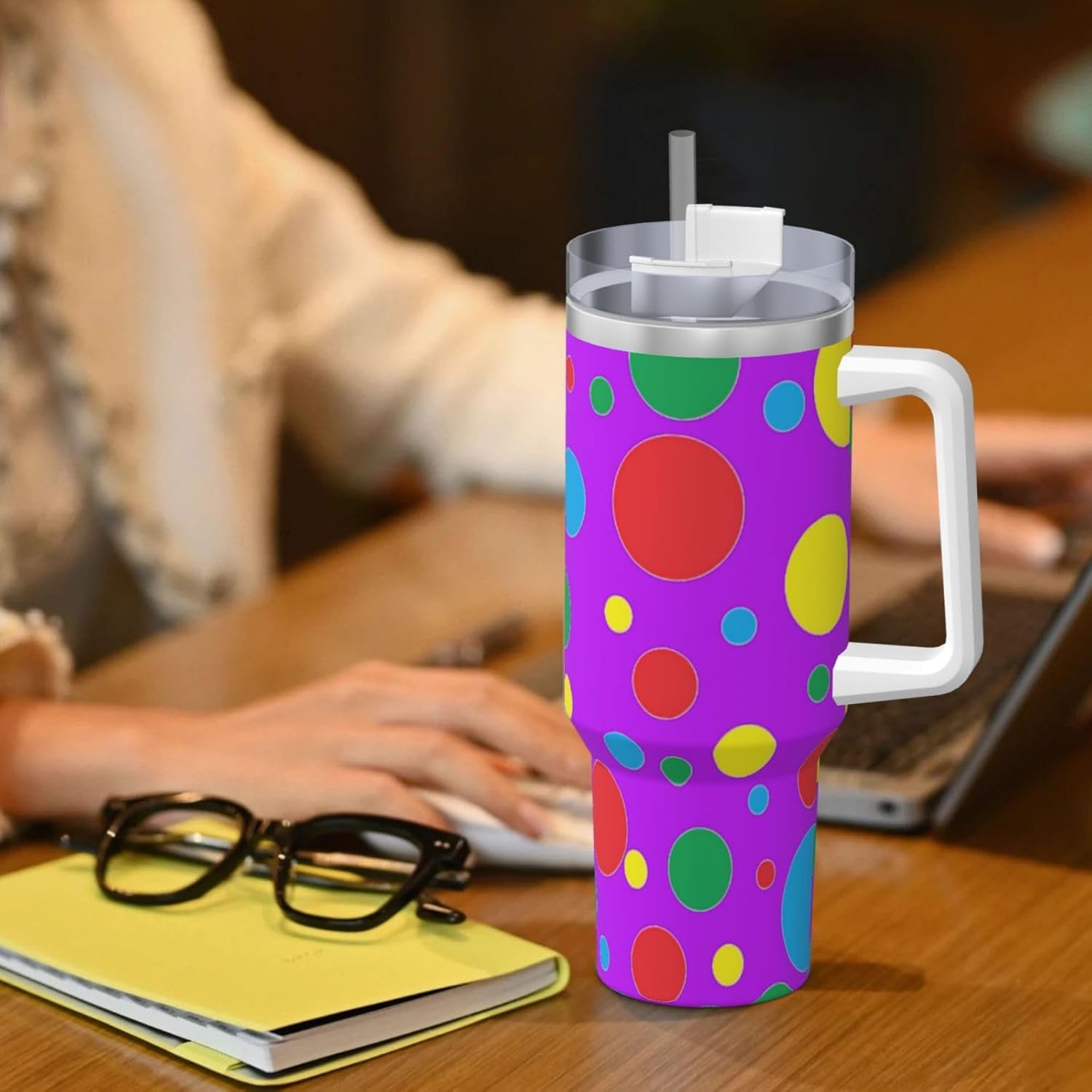 This Twister Polka Dots Print Ice Bully Cup features a double layer stainless steel design that can be used for a long time without rusting. The lid has good sealing to prevent water from overflowing, and it is easy to unscrew for filling and cleaning. It can keep water, coffee, or drinks warm or cool for hours and is suitable for travel, camping, and driving.