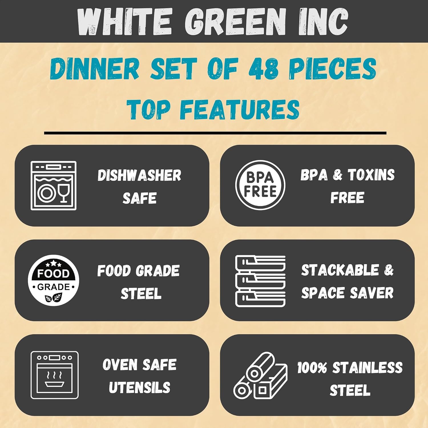 | Included Components | 12 Bowls, 6 Dinner & 6 Dessert Spoons, 6 Dinner Plates, 6 Quarter Plates, 6 Tumblers & 6 Forks |