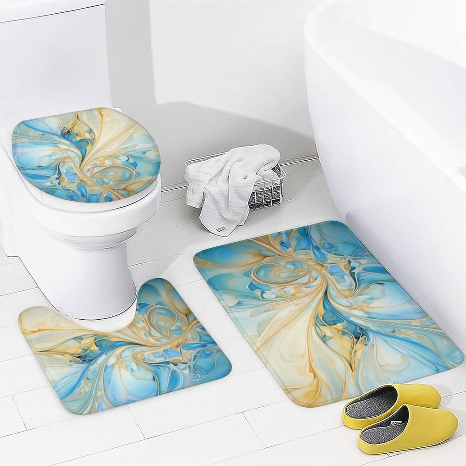Accessories construction : Floor mat + U-shaped floor mat + Toilet seat cover cover + Shower curtain (with 12 C-shaped plastic hooks) Material: This four-piece set is made of coral velvet + waterproof oxford fabric, the fabric is soft and delicate, skin-friendly and comfortable, with a good sense of touch. coral velvet floor mats are super absorbent, non-slip.EASY TO CLEAN: It's very easy to clean and maintain, usually cleaning just need a hoover to absorb the dust, easy to store and easy to take care of on a daily basis. When not in use, gently roll it up and put it in the corner, it can be used for a long time.WATERPROOF: This shower curtain is made of waterproof Oxford cloth, waterproof performance is good, you can avoid water spraying to other places in the bathroom.Applicable Scenarios : Suitable for home bathroom, guest room, bedroom, living room and other places.Washing instructions: washable, not machine washable.After-sales Service:If you are not satisfied with our printed paintings, please feel free to contact us and we will answer you in the shortest possible time. Your satisfaction is our only pursuit.