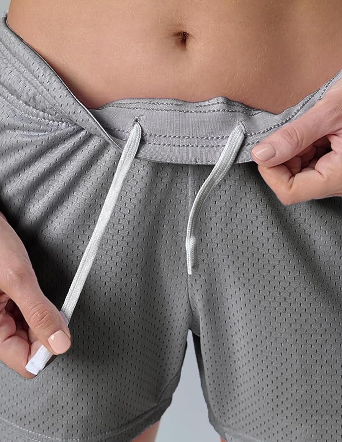 Workout, Relax, and Embrace Versatility with these All-Purpose Mesh Shorts for Women Step into the world of comfort and versatility with these multi-functional mesh shorts for women, designed to support you through intense workouts, casual strolls, or simply lounging at home. Crafted with champions in mind, these shorts boast a silky smooth mesh fabric, complemented by a tricot lining that feels cool and breezy against your skin, ensuring you stay comfortable and relaxed during any activity. Equipped with Dry-Fit technology, these gym shorts for women keep you cool and dry, effectively wicking away moisture from your body. The breathable construction offers excellent ventilation, allowing moisture to escape and keeping you feeling fresh throughout your workouts or daily activities. These casual athletic shorts are perfect for various activities, such as yoga, exercise, fitness, gym sessions, running, or any type of workout. They also make a great everyday option for women who value both style and comfort. The elastic waistband features an adjustable internal drawstring, ensuring a custom fit and feel tailored to your unique body shape. Stay worry-free when it comes to carrying your essentials, thanks to the hidden zip pockets that securely store your valuables. With a 5-inch inseam, these shorts provide ample coverage, allowing you to move with ease and confidence during your activities. Experience activewear made better with these mesh shorts that prioritize both comfort and functionality. Elevate your athletic apparel collection with this essential piece, and discover a new level of style, comfort, and performance. Fall in love with these all-purpose shorts that seamlessly blend into your active lifestyle and make every moment enjoyable.