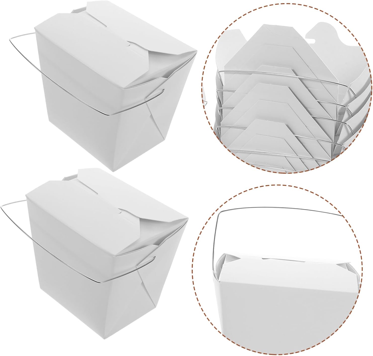 Package List 50 x Chinese Paper Take Out Box Features -Multiscene use: ideal for family gatherings, picnics, and office lunches, providing a for various dining occasions chinese to go containers -Color:White chinese to go boxes -Versatile design: suitable for a variety of takeout foods like fried rice, chicken, and fries, offering flexibility in meal choices take out paper box -Size:9.30X8.50X7.30cm/3.65X3.34X2.87in chinese food containers - and reliable: made from sturdy materials that resist deformation, ensuring your food stays fresh and delicious chinese containers -Compact and handy: small and convenient, these boxes are easy to carry and use, It's for busy individuals chinese takeout boxes -Material:Iron,paper take out boxes -Effortless transport: the wire handle design makes it easy to carry your takeout food, solving the problem of meal transportation chinese takeout boxGoods Informationmini chinese take out boxes They are for restaurants looking to reduce their environmental impact while still providing iron, take-out options.chinese containers The wire handles add an extra layer of convenience for customers on the go.chinese to go boxes These paper food containers are disposable, making cleanup a breeze