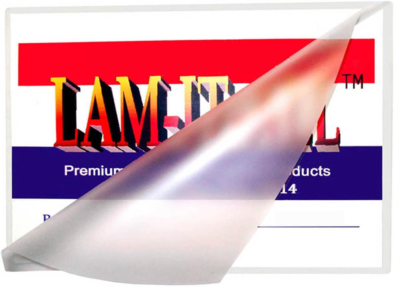 LAM-IT-ALL 5x7 Photo size 5-1/4" x 7-1/4" x 10 Mil 2 sides heat activated laminating pouches with a clear glossy finish and standard 1/8" radius rounded corners are 10 Mils (metric 250 microns) thick on each flap adds a total of 20 mils to your paper sheet. 5.25" x 7.25" (metric 133mm x 184mm) laminator supplies are for paper lamination and protection. Laminating Tips: Industry standard specification for 10 Mil laminating pouches is 10 Mils on each flap for a total of 20 mils added to your paper sheet. Also, 1 mil equals 1/1000th of an inch (or 25 microns metric). The industry calls these laminating pouches when they are sealed on only one edge instead of three. They should be called laminating folders. Note: All laminating pouches are NOT the same, especially in clarity and bonding. Please try LAM-IT-All laminating pouches bearing our red, white and blue label and a performance guarantee.