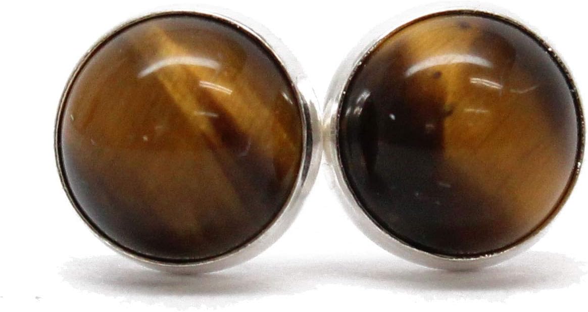 • Genuine 6mm Tigers Eye Gemstone Stone Stud Earrings