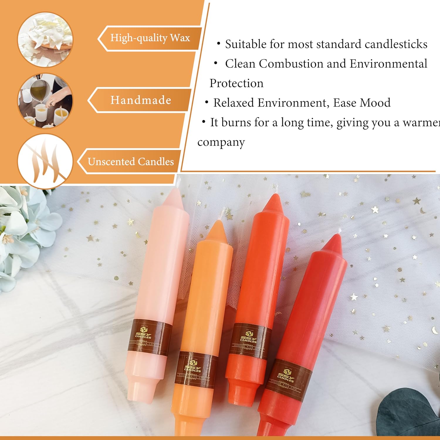 | Product Style | 8 PCS Gradient Orange Taper Candlesticks |