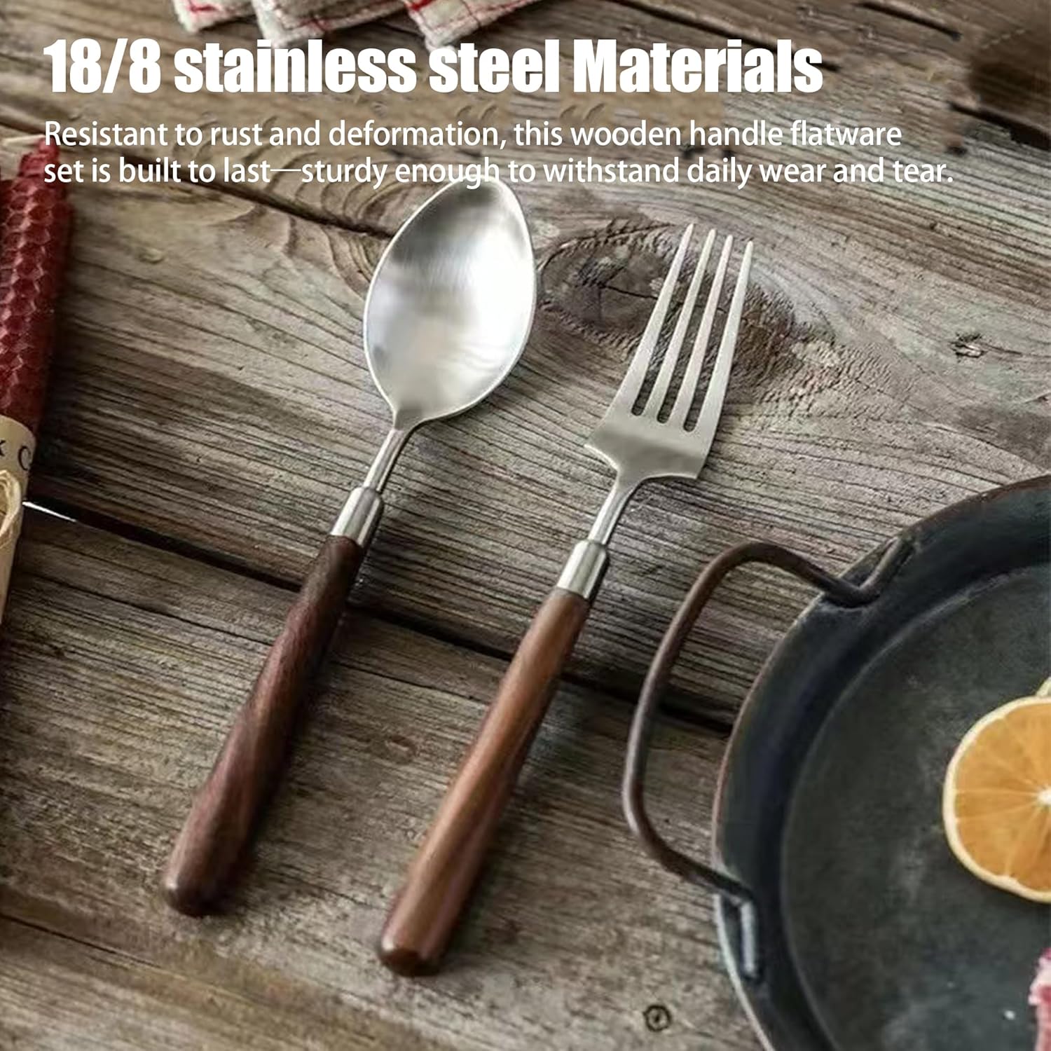 | Additional Features | Break Resistant, Unique design, stainless steel, wooden handle, wooden handle silverware set |