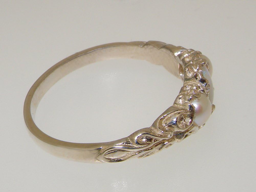 One centre oval cut 6x4 mm (0.24" x 0.16") Colorful Fiery Opal and two Freshwater Cultured Pearls approx 4mm (0.16") round set in this Solid Sterling Silver Victorian style setting. This is a Genuine Natural Opal Gemstone. This Colorful Opal stands out wonderfully set against the polished Silver and contrasts with the Satin sheen of the Cultured Pearls providing such an Elegant overall appearance. The ring has a good thick shank and a Highly Polished finish. This is a delightful piece to wear, comfortable and easy to wear, large enough to be noticed but not overpowering. The inside of the shank has a marking, this is a Full Hallmark made by the London Assay Office in England - This mark includes 925, the Leopards Head and the Royal Lion. This is your independent proof and guarantee that the ring has been completely made from Solid Sterling Silver. This ring was Designed and Made in England, is available in a wide range of sizes and will be sent to you in a Luxury Presentation ring box.