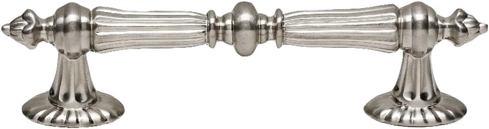 Features: Constructed of solid brass for lasting durability Coordinates with other items from the Ornate series Covered by a limited Unlacquered Brass Finish: This finish PB/NL is a ''living finish''. Over time, living finishes may develop a patina by use or rub-off, and coloration changes will occur in a natural process unhancing the color. Alno, INC is not responsible for coloration changes on ''Living'' finishes Includes 1 pull Dimensions: Center to Center: 4-5/8'' Length: 6-1/2'' Width: 7/8'' Projection: 1-5/8''