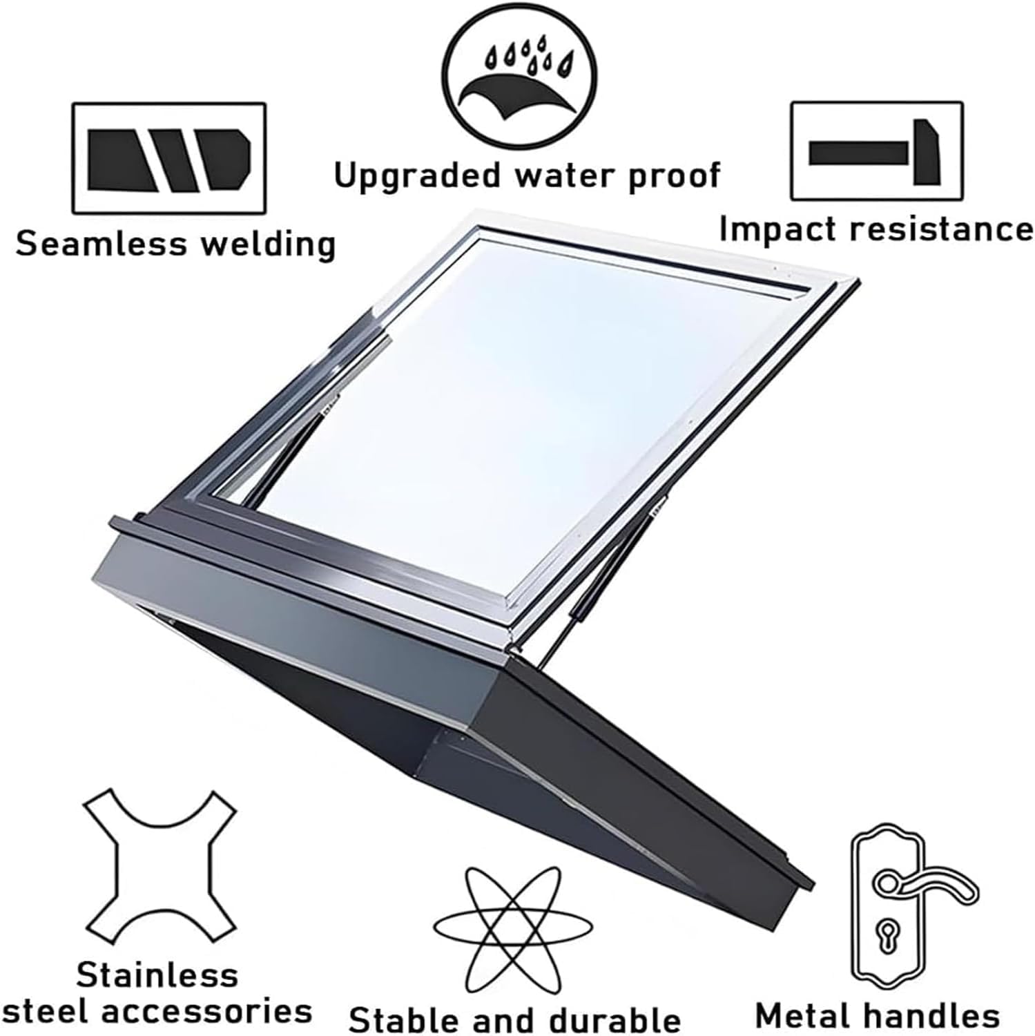 Welcome to our shop! Discover the perfect addition to your home with our high-quality aluminum alloy skylight. Designed for durability and stability, this skylight features hydraulic support that allows for easy opening and closing, making it ideal for various applications including roofs, attics, porches, and basements. Our aluminum alloy construction ensures exceptional performance, providing sound insulation, heat retention, and resistance to wind and pressure. Whether you're looking to enhance natural light in your living space or improve ventilation, this skylight delivers both functionality and style. The modern design seamlessly integrates with any architectural style, adding a touch of elegance to your home. Included in the package are one skylight and all necessary accessories for a hassle-free installation. Please note that colors may vary slightly due to lighting conditions, and we recommend allowing for minor measurement discrepancies. Upgrade your home with our reliable and stylish skylight for a brighter and more inviting atmosphere!