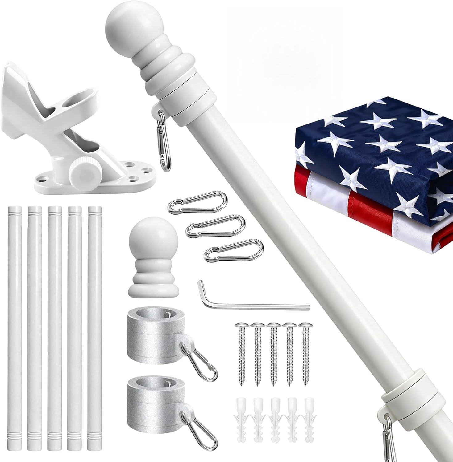 American Flag Outdoor Heavy Duty Patriotic Pride: Our premium, well made USA flag and pole set features a 6ft 5-section metal flag pole paired with a crafted Tear Resistant All weather 3x5FT nylon American flag—a Durable US flag built for high winds that fits perfectly with the pole, designed to withstand outdoor elements while flying with vibrant colors and unwavering patriotism. Metal Flag Pole with 3x5 Ft America Flag:Metal Flag Pole with 3x5 Ft US Flag Set–Equipped with a American Flag Outdoor Heavy Duty nylon, this combo delivers uncompromising durability that stands up to any outdoor condition. The All Weather Durable usa flag boasts embroidered stars for premium texture and strength, plus UV-resistant non-fade technology to lock in bold red, white, and blue hues Vibrant colors after season. All Weather Durable American Flag:Crafted with premium PU-coated heavy-duty material, this usa flag outperforms ordinary nylon us flags by a mile with unmatched durability and longevity! Engineered with Tear Resistant and Weather Resistant properties, The stitching is strong, some are double or multi-threaded,stress.its rugged construction stands up to violent storms, torrential downpours and fierce gusts without damage; the waterproof design shrugs off rain, snow and sleet effortlessly. American Flags for Outside with Pole Versatile Display for Any Location:Whether mounted in your residential yard, patio, garden, or commercial storefront, this set is perfect for us flags for outside 3x5 displays. It shines for patriotic holidays including Independence Day, Memorial Day, Veterans Day, and Flag Day, and works seamlessly for everyday display of your 3x5 American flag deluxe water resistant outdoor heavy duty to celebrate national pride. Long-Lasting Durability You Can Count On:Crafted with stronger fabric and reinforced stitching for extended use, this wind-resistant USA flag and pole set stands up to outdoor conditions. As a weather-resistant combo, it’s a practical choice for patriotic displays, ideal for the American Flag Outdoor Heavy Duty with Pole.premium American flag pole set fits all American flags for outside with pole setups, including 3x5 heavy duty outdoor UV and stitched American Flag.