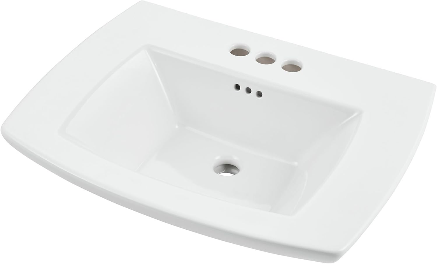 The Edgemere Pedestal Bathroom Sink has a classic style with an updated twist that will complement any bathroom. The Edgemere Bathroom Sink pairs perfectly with the Edgemere Pedestal leg to give your bathroom an elegant look. Made of fine fireclay, this sink is designed with a rear overflow and a faucet ledge with a large deck area.