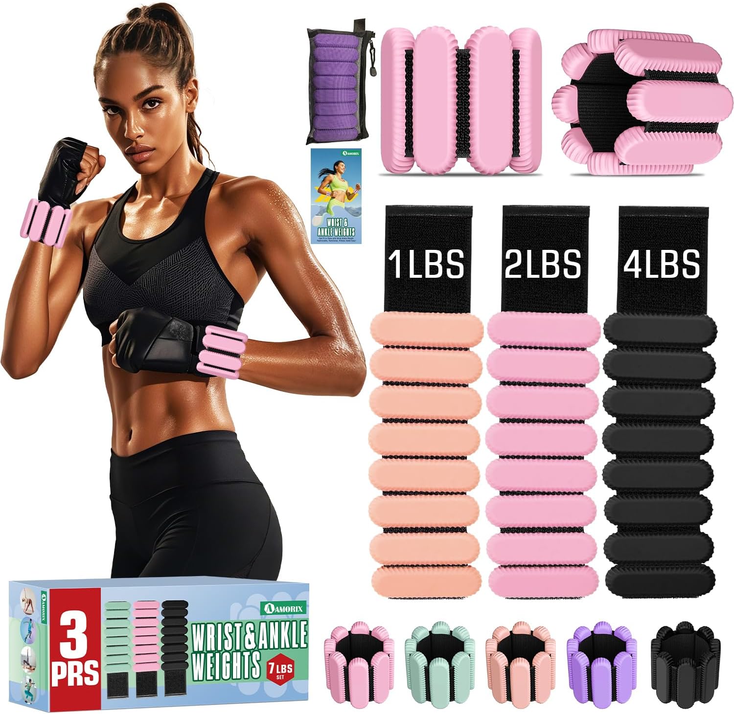 Ankle Weights for Women Men,Wrist Weights set for Walking Running,3 Pairs (0.5lb/1Lb/2lb Each Side) Silicone Workout Weights for gym fitness,Jogging,yoga,strength training,physical therapy