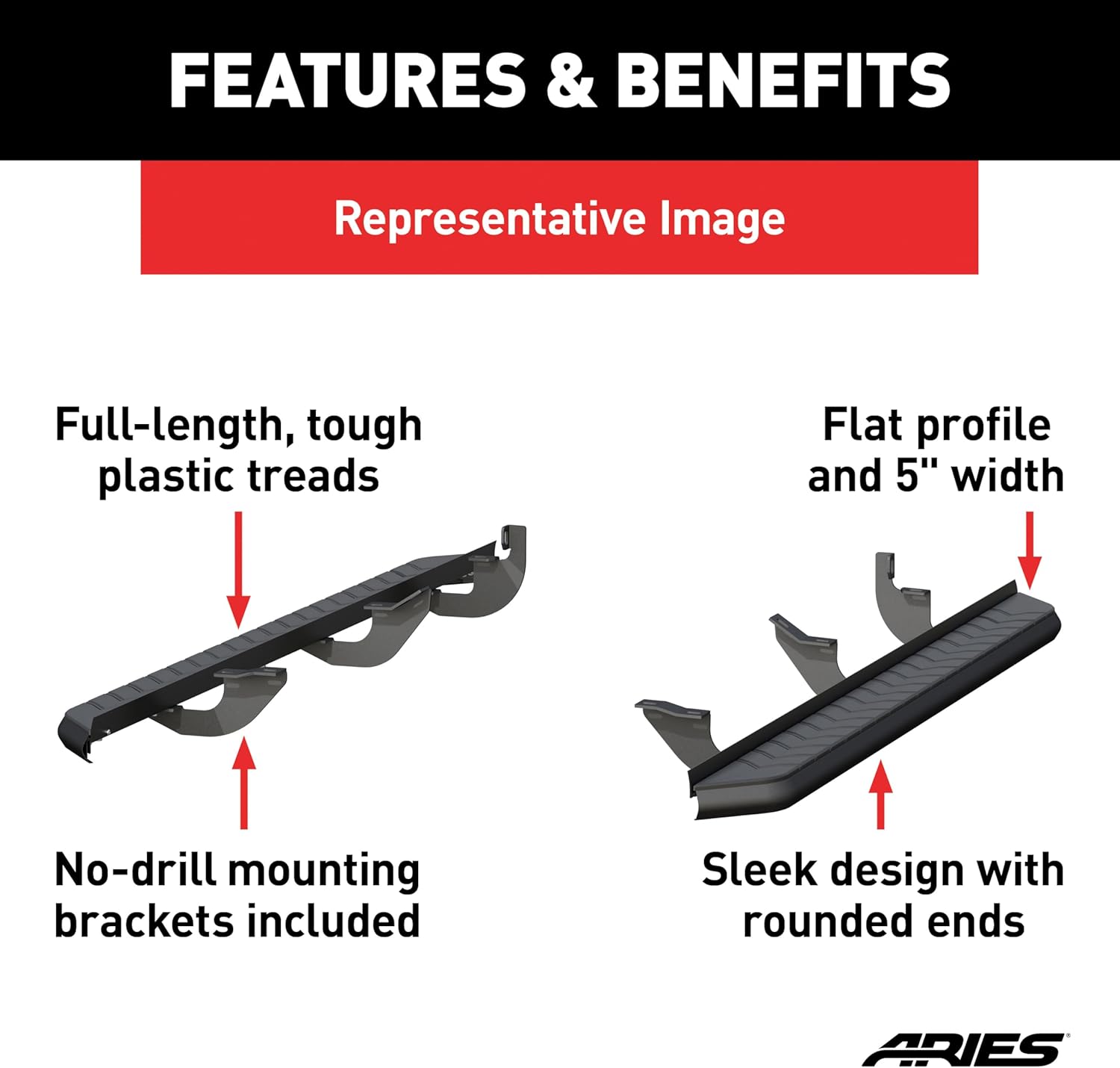 For some, it's more than just a drive. It's about definition -- finding the rush that comes with your hands on the wheel and your foot on the gas -- and it starts by stepping into your vehicle with confidence. ARIES AeroTread running boards give new definition to your drive with their sleek design, full-length treads and flawless finish. They feature unencumbered aluminum construction and a custom contour to redefine your look and offer a solid step up. Made specifically for today's crossover and SUV, ARIES AeroTread running boards are marked for their aerodynamic look and lightweight build. They are constructed from an extruded aluminum base, making them strong and impervious to the elements. Each set of running boards features sleek, curved edges with tapered ends to seamlessly blend with the body of your vehicle. To give you the exact, customized look you want, AeroTread running boards come with one of two front-trim finish options: polished stainless steel or black carbide powder-coated stainless steel. They are also equipped with a 5" wide, hard plastic step pad that runs the entire length of the board, providing a non-skid surface no matter where you place your foot. AeroTread running boards install using a track mounting system to attach vehicle-specific brackets, and pre-existing holes in the vehicle's frame are used to eliminate dr illing, speed up installation and ensure stable footing. This set of running boards is designed to fit specific years of the Honda Pilot (see application information to verify compatibility with your vehicle). The mounting brackets are made from steel and are coated in a powder coat finish for long-lasting dependability. Whatever road you choose, define your drive with ARIES AeroTread running boards.