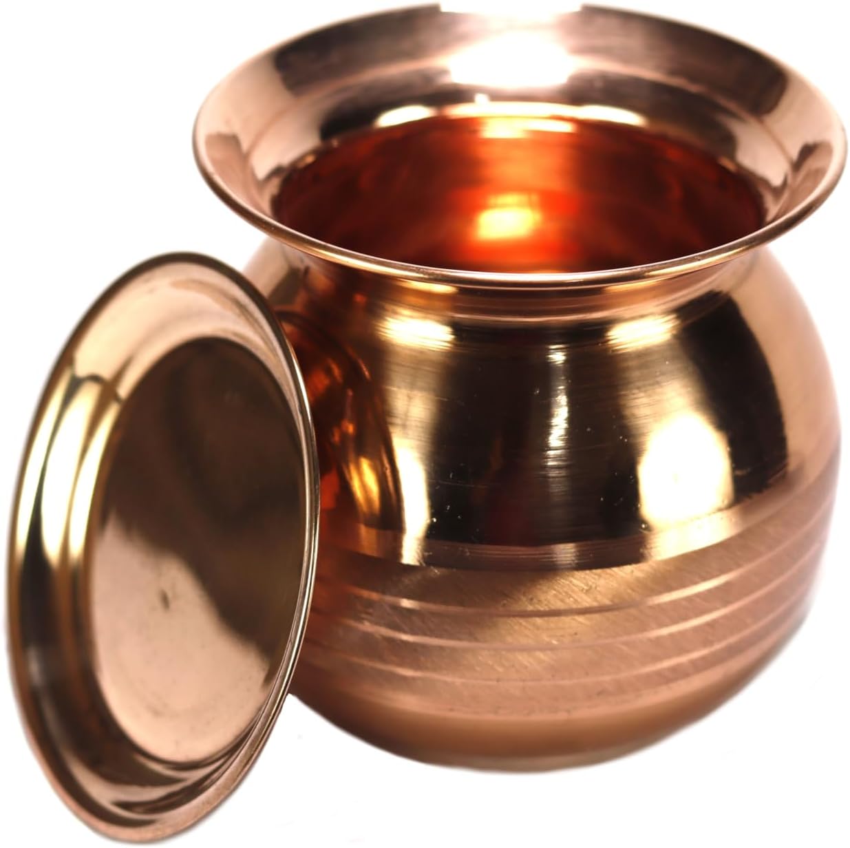 ASHIRWAD Pure Copper Lota for Pooja Hindu Prayer Kalash Arti Pot, Brahma, Lakshmi Puja. We offer an unmatched array of Lota. This is hugely appreciated and known for its, reliability, durability, excellent polishing, easy to clean and maintain nature, fine finishing, defect-free features. Drinking water from the copper container is good for health but one should drink one glass per day. One should not drink copper water all day long. You can decorate the kalash during puja rituals. Use mango leaves, merrigold flowers, roses, as shown in the picture. Use coconut wrapped in red colour cloth with mango leaves around the coconut.