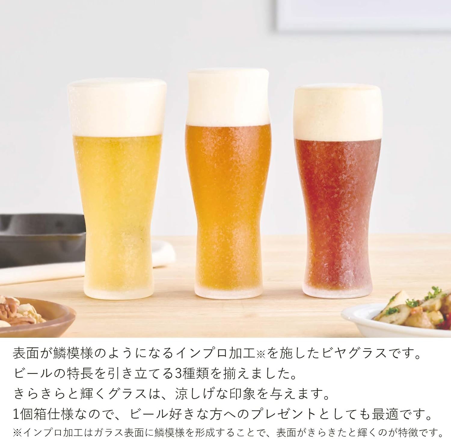 This beer glass has been impro processed to resemble a scale pattern. Comes in 3 types that enhance the characteristics of beer. The sparkling glass gives a cool impression. Comes with a single box, making it the perfect gift for beer lovers. Whip flower shape: Improves the foaming mochi of the beer, so you can enjoy it without losing its fullness and flavor