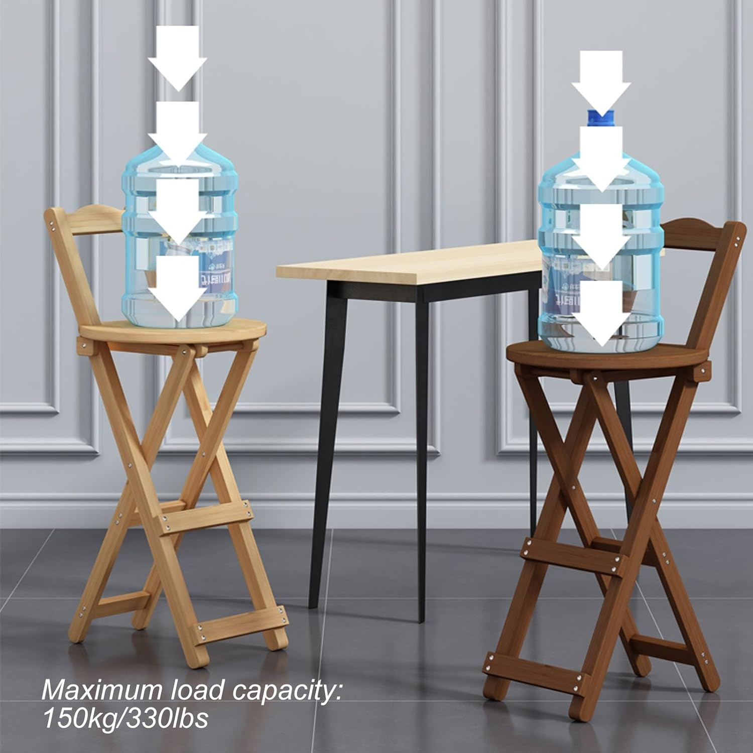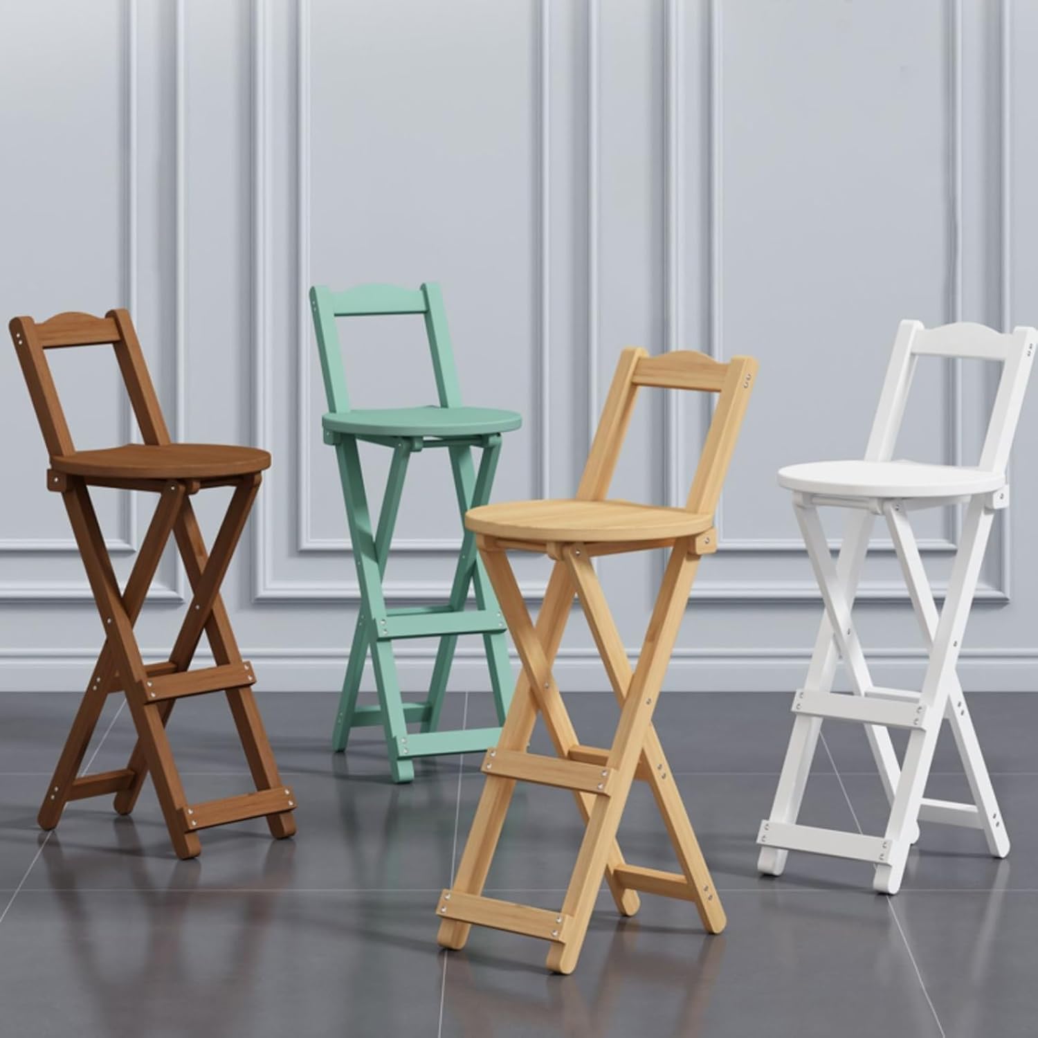 The wide round seat and comfortable backrest are designed in line with artificial science will not make you tired after sitting for a long time.Ideal families, restaurants, bistros or cafesNo installation required, quick to useLoad capacity up 100kg/220lbsMaterial: BambooColor: green, white, natural, walnutHeight from floor: 45cm/18in, suitable height: 70-75cm (27-30inch), folded 75cm/29.5inHeight 63cm/25in, 85-95cm (33.5-37.4inch), 90cm/35.5inHeight 75cm/30in, 100-110cm (39.4-43.3inch), 102cm/40inPacking list: Folding stool x1Notice:Manual measurement, please allow slight errors size.Colors may vary slightly due different screen displays.