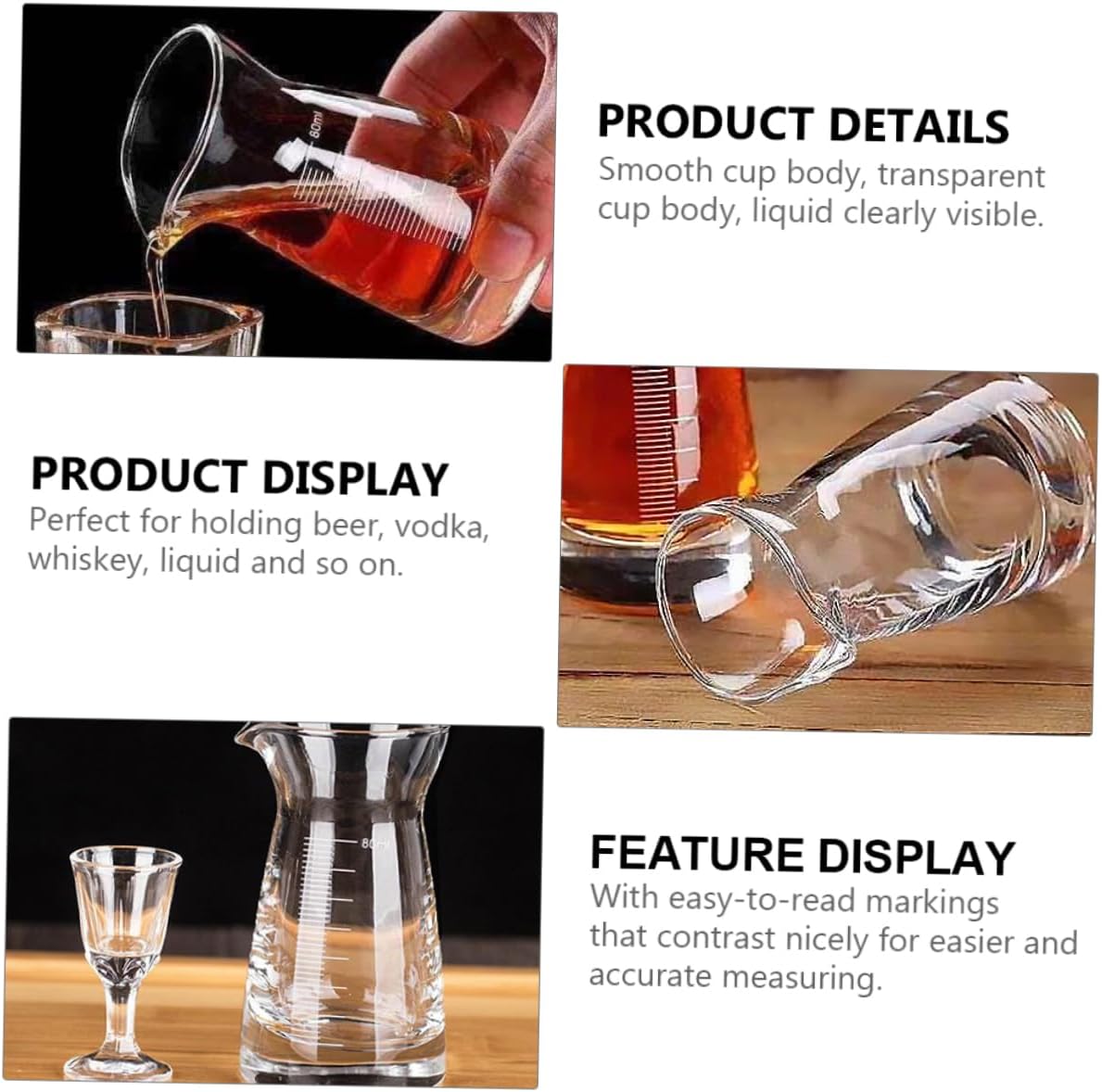 Package Include 6 x Measuring Cups Features - Size: 10.00 x 5.00 x 5.00 cm/ 3.93 x 1.97 x 1.97 inch Beaker Glass Cup. - Color: Assorted Color Measuring Cups for . - Material: Glass Measuring Cups. - The smooth glass surface will not stab your hands and mouth, you can use it safely. Cup - Can be used to measure and store liquid for bar, household, restaurant and much more Transparent Measuring Cup. - Each measuring cup is printed with clear scale, with easy-to-read markings Drink Measuring Container. - Made from glass material, which is using and Liquid Measuring Cups. - for measuring liquids, vodka, whiskey, drinks, etc Glass Measuring Jugs.Goods InformationGlass Measuring Jugs It is one of for you.Measure Liquid Cup Are you looking for a liquid measuring cup ? Are you in search of a sturdy, trustworthy tool that can do multiple jobs at once? , ! Our professional multi-function measuring cup must meet you needs