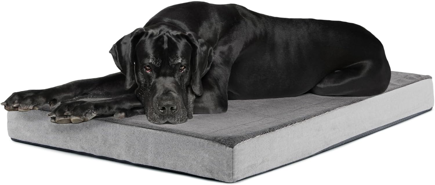 Give your pup the comfort they deserve with the BARKBOX Orthopedic Dog Bed, designed with memory foam for joint relief, pressure point support, and restful sleep. This large calming dog bed measures 35" x 22" x 3", offering plenty of space for large breeds, while also working as a cozy puppy bed or supportive senior dog bed. Made for durability and comfort, this washable dog bed features a water-resistant cover and plush materials that stand up to daily use. It doubles as a dog crate bed or standalone lounge bed, giving you versatile options for crate training or home use. The orthopedic memory foam contours to your dog's body, relieving stress and supporting overall health. Practical and stylish, the BARKBOX Orthopedic Dog Bed blends seamlessly with your home décor while becoming an essential part of your pet dog supplies. With its durable construction, washable cover, and therapeutic comfort, it's a chew proof dog bed alternative that pet parents can rely on.