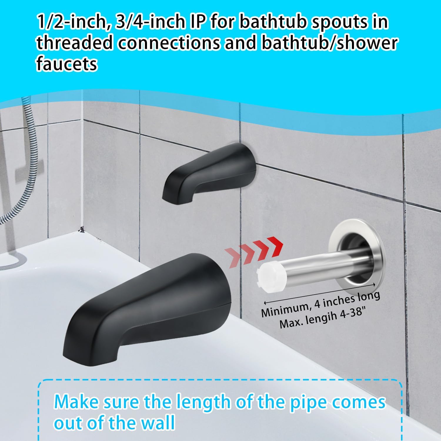Specification: Color: black Material: zinc alloy and plastic Product Size: as shown in the picture Package details: 1 x bathtub spout 1 x adapter Note: Due to manual measurement, the size and weight may have a certain error. Due to the difference between different monitors, there may be a slight color difference existed.