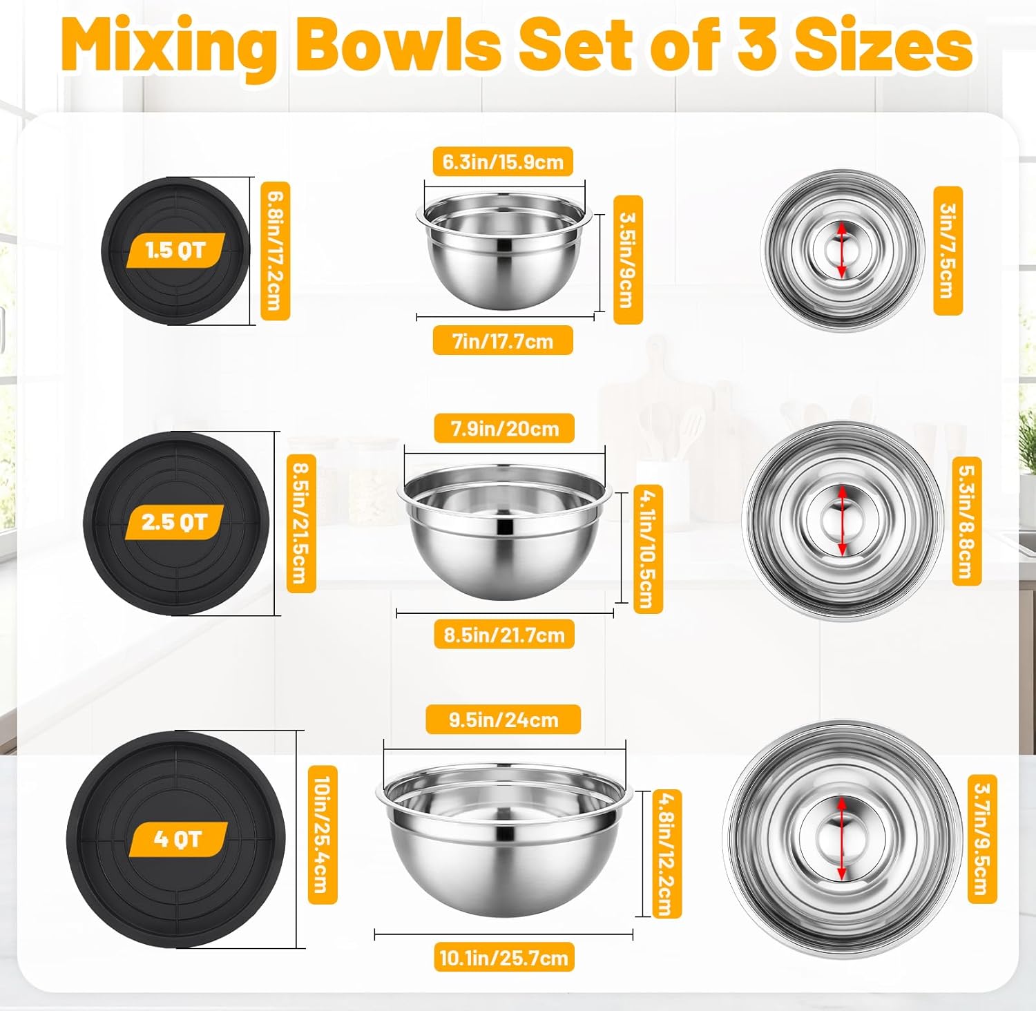 This bundle set combines 2pcs 1lb Carbon Steel pullman loaf pan and 3pcs 1.5 / 2.5 / 4 QT stainless steel mixing bowls, all with lids