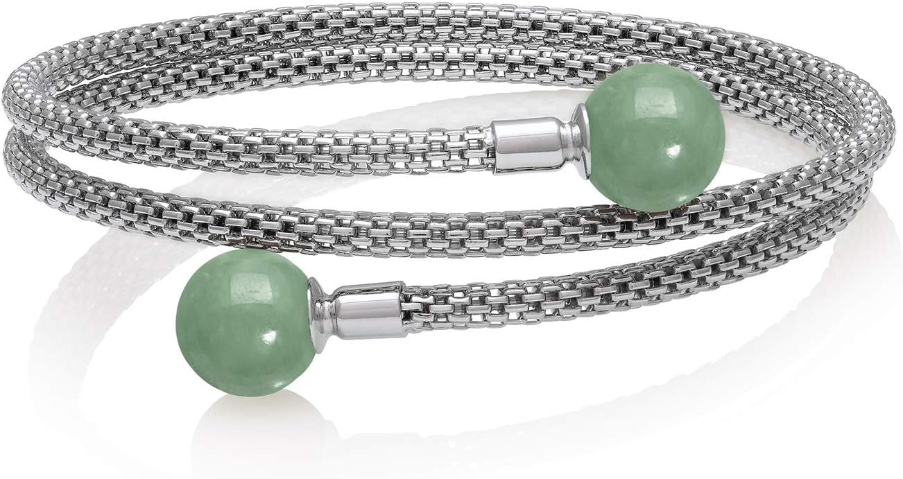 Wrap your wrist in style with modern mesh designed sterling silver bracelet. Accented by two genuine jade stones, this chain link bracelet is both charming and versatile.