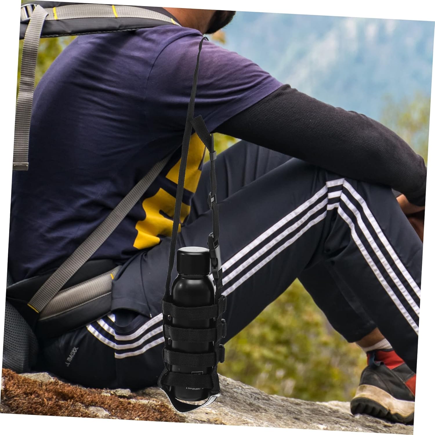 Package Include 1 Bottle Carrier Characteristics -Color:Black bottle cover with strap - Size: 16.00X10.00X2.00cm/6.29X3.93X0.79in kettle strap -Material:Polyester water bottle strap -Suitable for walking, biking, hiking, picnic, camping, boating, etc., light and convenient water bottle cover. -It is small in size, light in weight, does not occupy a lot of space, and is convenient to carry water cup sleeve. -The bottle cover and strap are both adjustable. Suitable for most stainless steel cups, plastic bottles, coffee cups, and other water bottles water bottle straps. -The creative design will give you a wonderful experience and bring you a mood sports bottle sleeve. -Simple and practical design, it is outdoor sports and travel sports bottle sleeves.Goods Informationwater bottle straps Using , practical and durable.camping supplies It is not easy to deform, which brings you a lot of convenience.bottle carrier with strap That's because our bottle carrier can meet your needs.sports bottle cover If you are looking for a professional and water bottle cover, then your research is here
