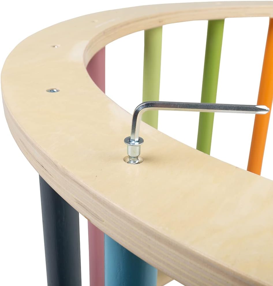 Our Wooden Climbing Arch is a versatile Montessori toy that can be used for endless play possibilities; Use it as a climbing frame, cover it with a blanket to make a den, hang rattles & teddies for babies, plus much more. Our climbing frame features pretty rainbow coloured rungs=and is crafted from sustainably harvested FSC Certified wood. It helps tots to develop their stability, balance, core strength and climbing skills as they make their way over it. Our wooden climbing archs compact size ensures it doesnt take up too much space in the nursery or playroom (indoor use only) and can be neatly stowed away. Suitable for 12+ months, it makes an ideal first birthday or Christmas gift. Requires adult assembly FSC Arched Climbing Frame - product features: Rainbow wooden climbing arch Made from ethically sourced FSC Certified wood Non-toxic paints and lacquers 12+ months Requires adult assembly 35030 W 80cm x H 37cm